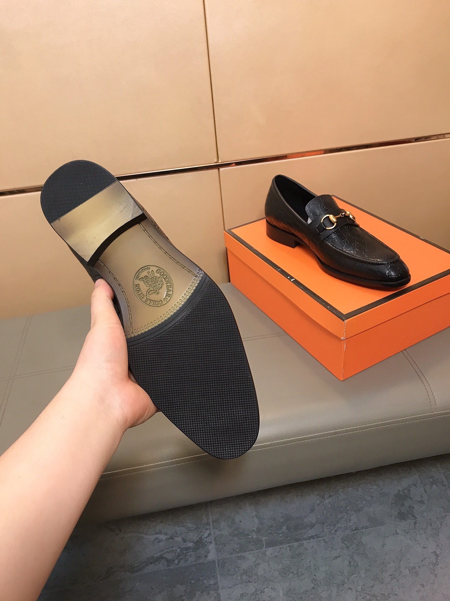GG Men's Jordaan Loafer Black Embossed Cowhide 529783