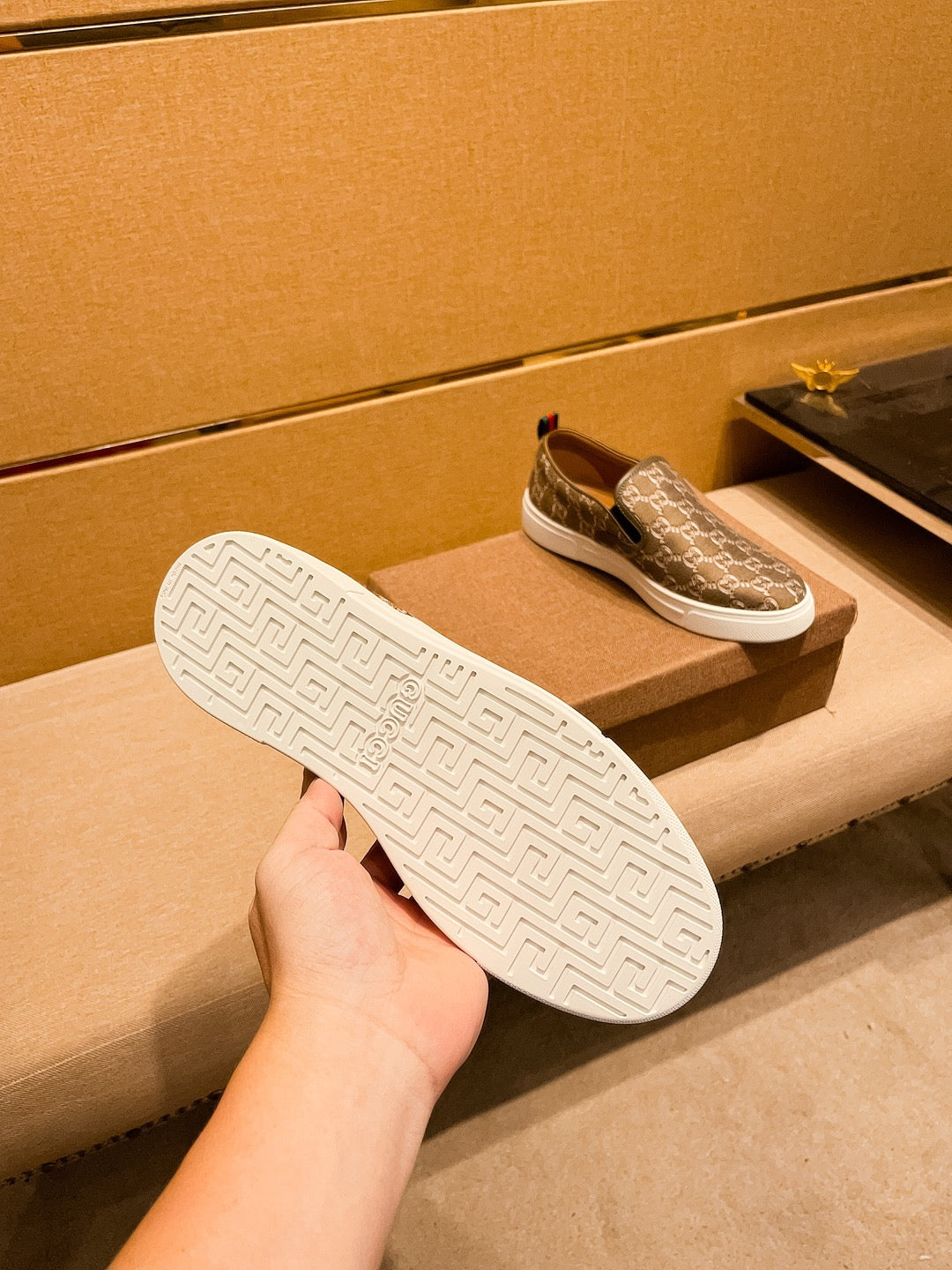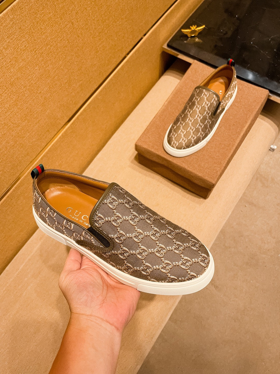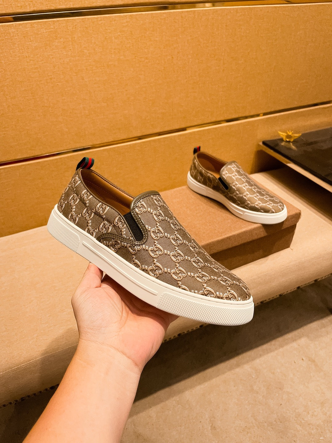 GG Men's Slip on Loafer Brown Fabric 477012