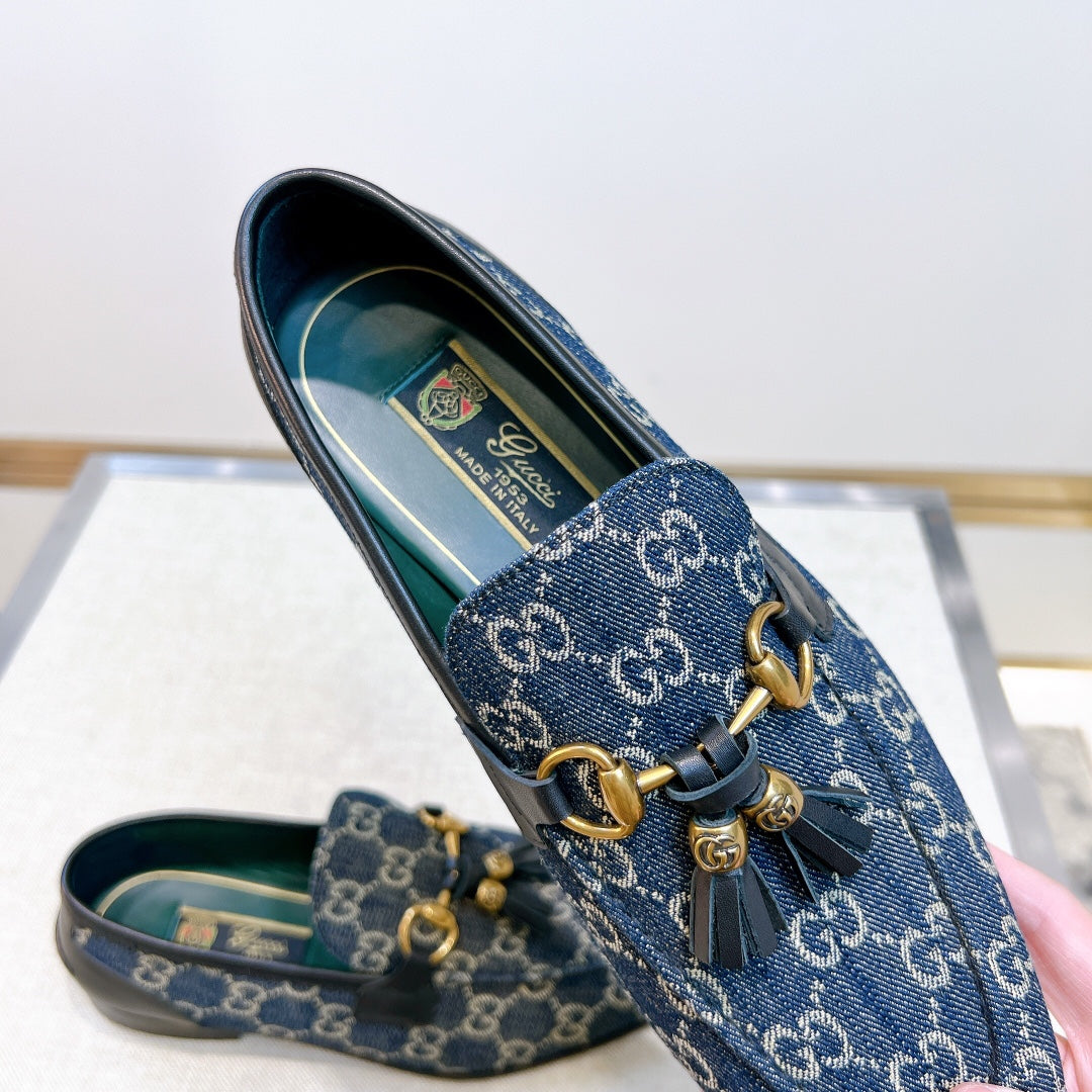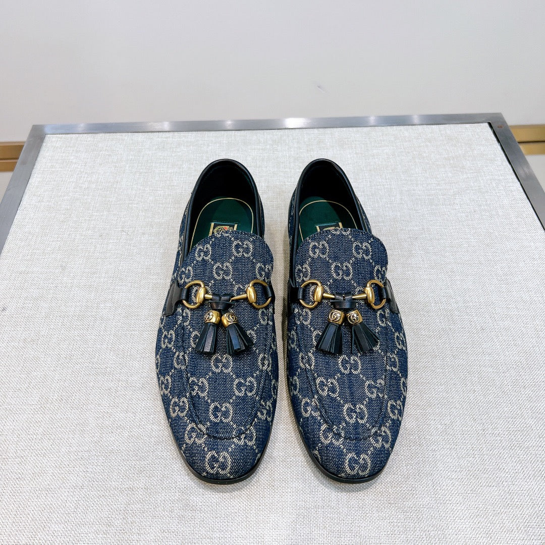 GG Men's Tassel Loafer Blue Canvas Calfskin 361363