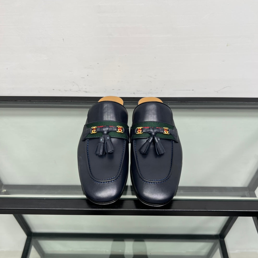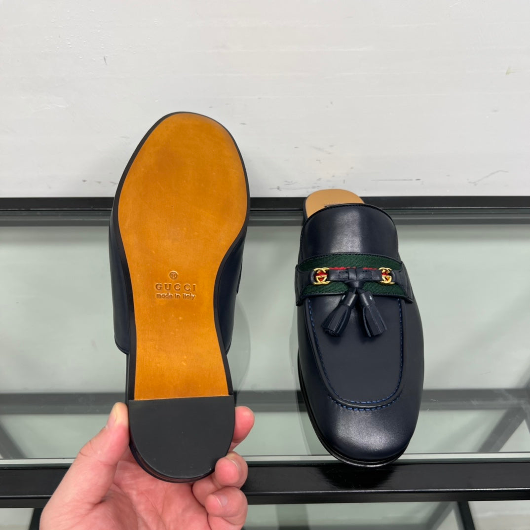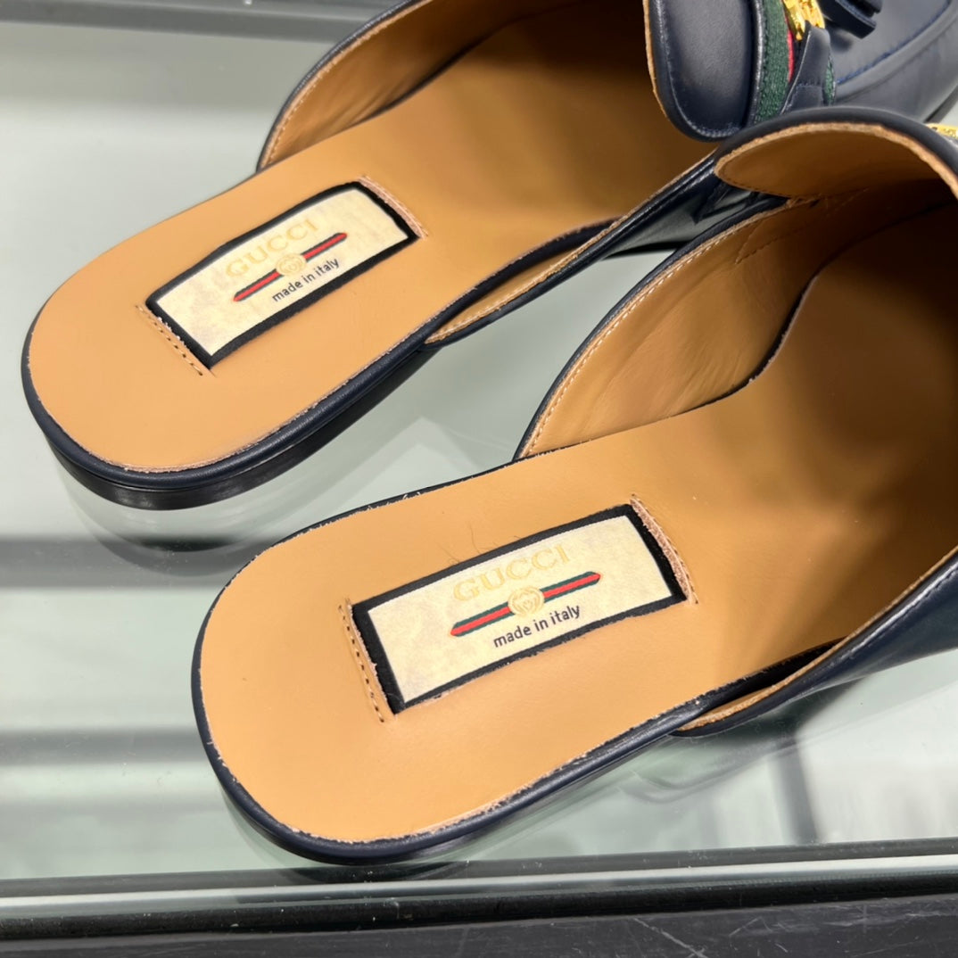 GG Men's Tassel Mule Navy Blue Calfskin 559046
