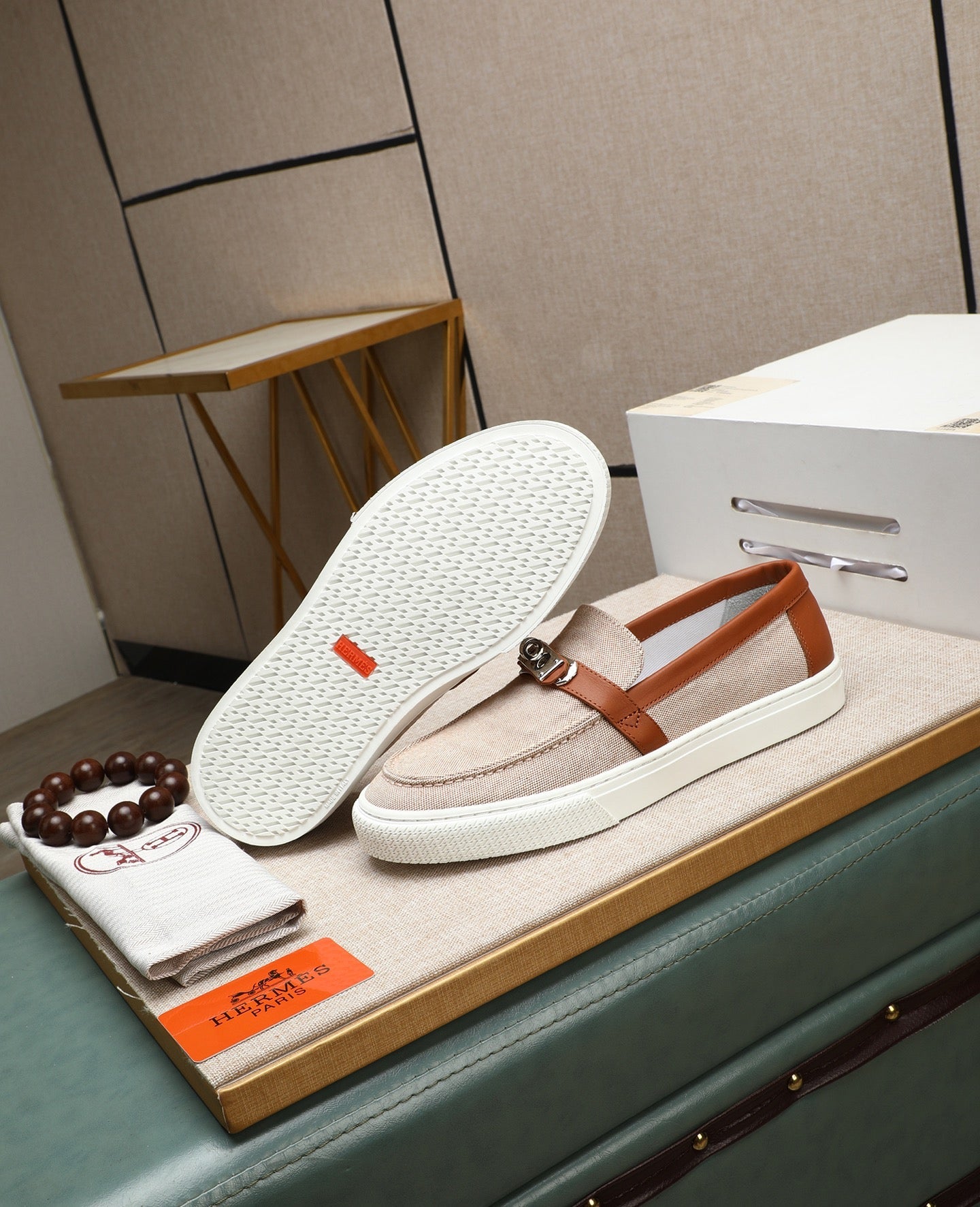 HM Men's Game Slip-on Beige Brown Denim Cowhide 712267