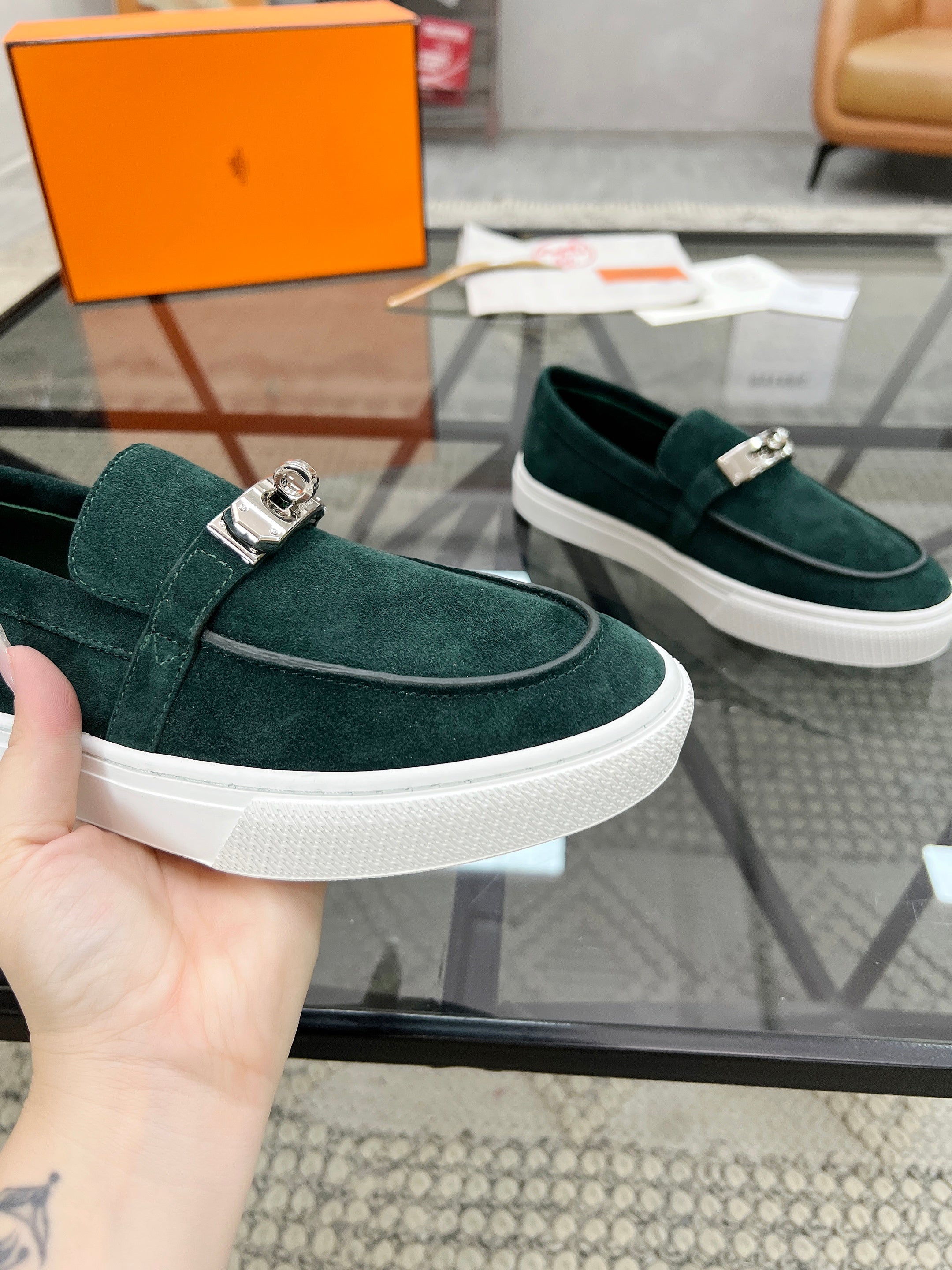 HM Men's Loafers Green Suede 621425
