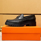 HM Men's Moccasins Loafer Black Calfskin Embossed 710912
