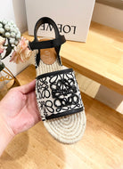 Loew Anagram Black logo White Black Beige Leather And Canvas Espadrille Sandals