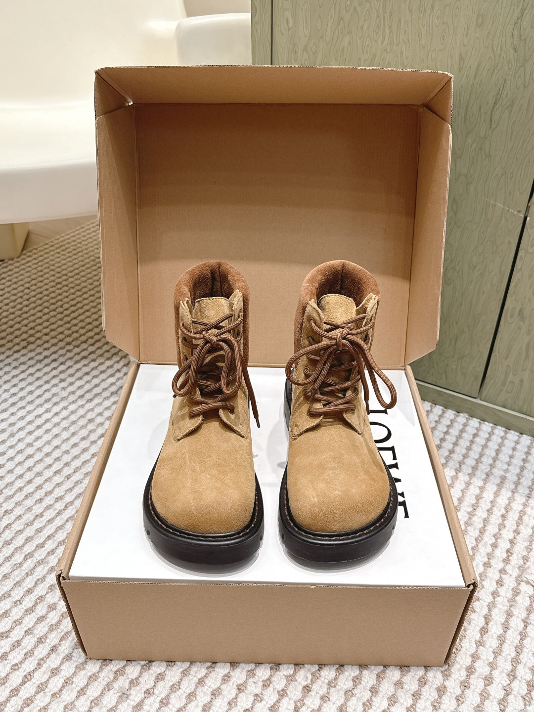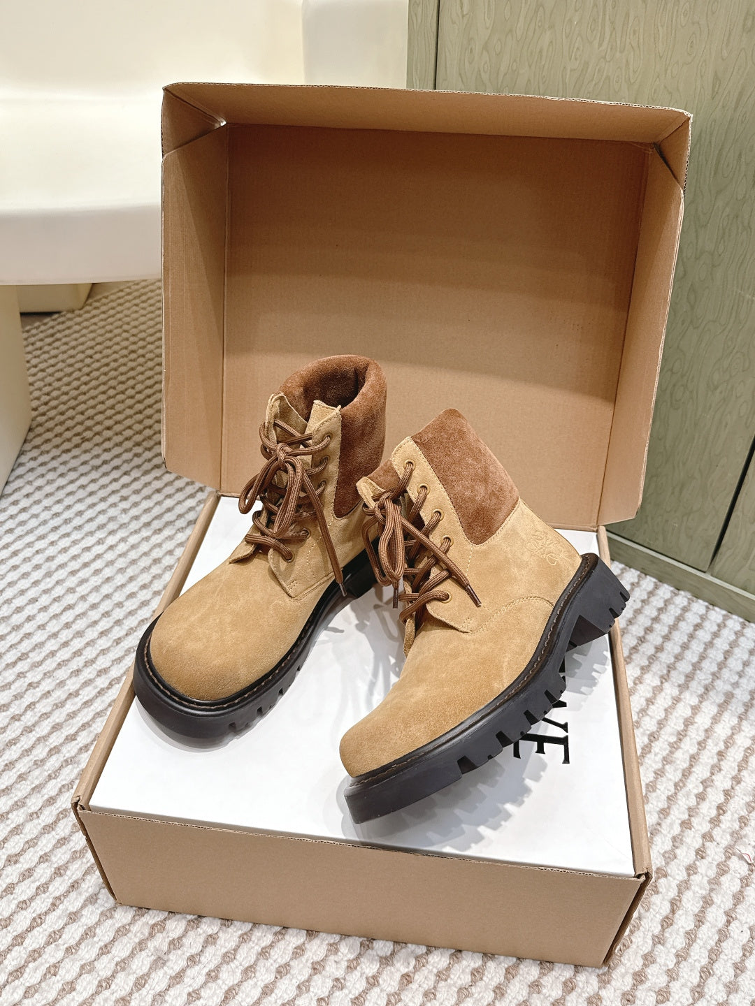 Loewe 2025 Sierra Ankle Boot Tan Black Suede 556050