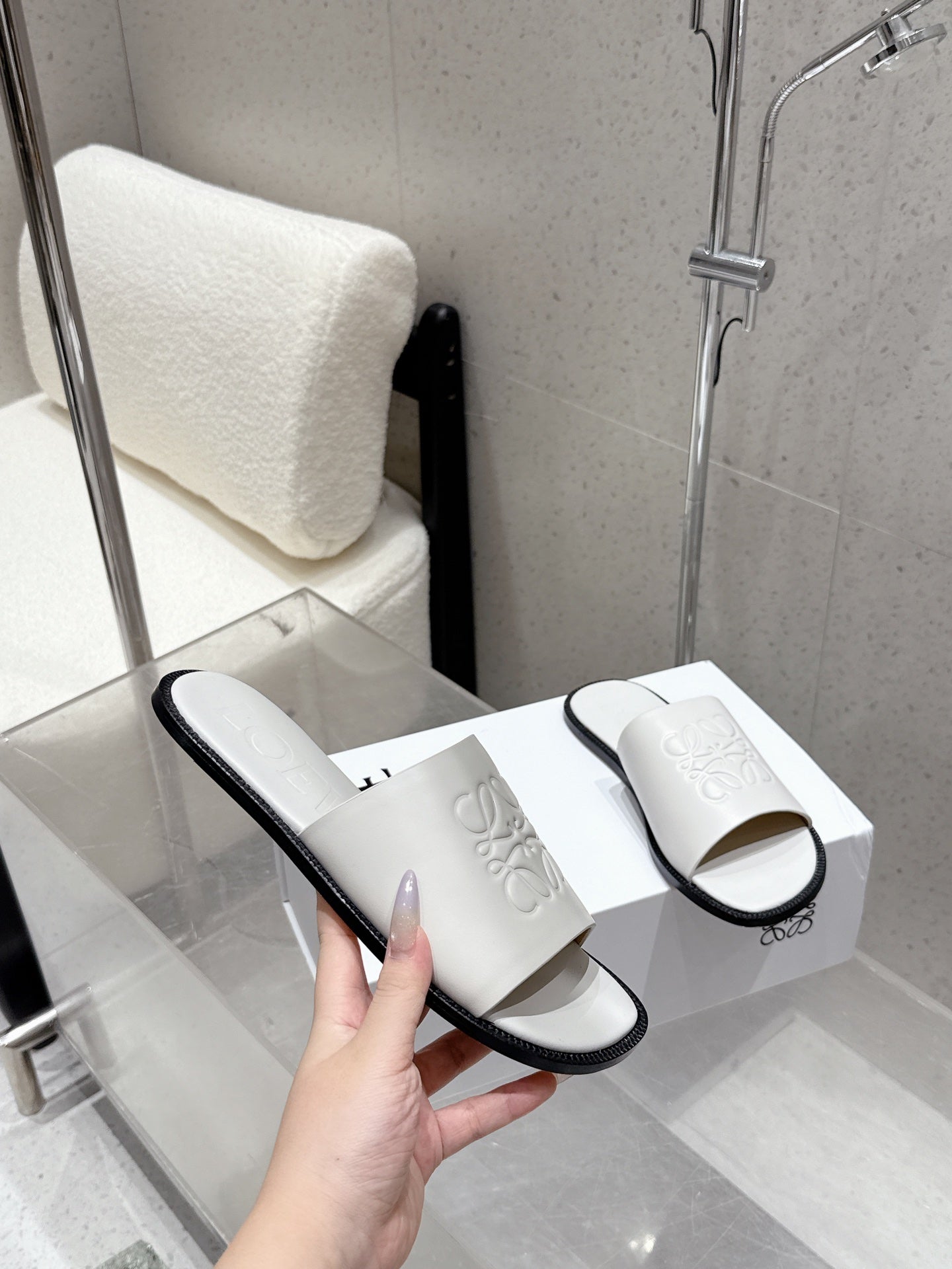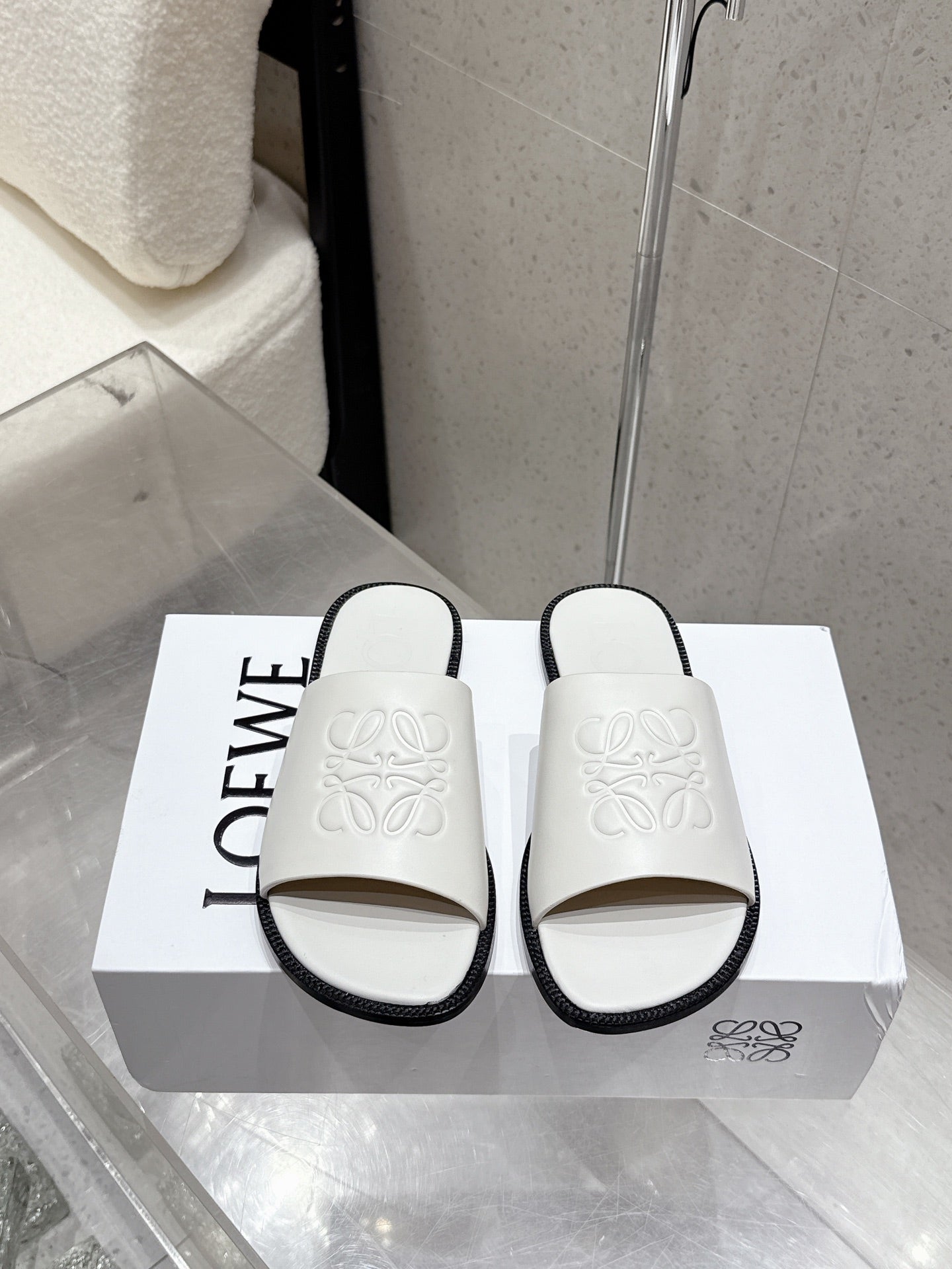 Loewe 25 flat slippers white calfskin