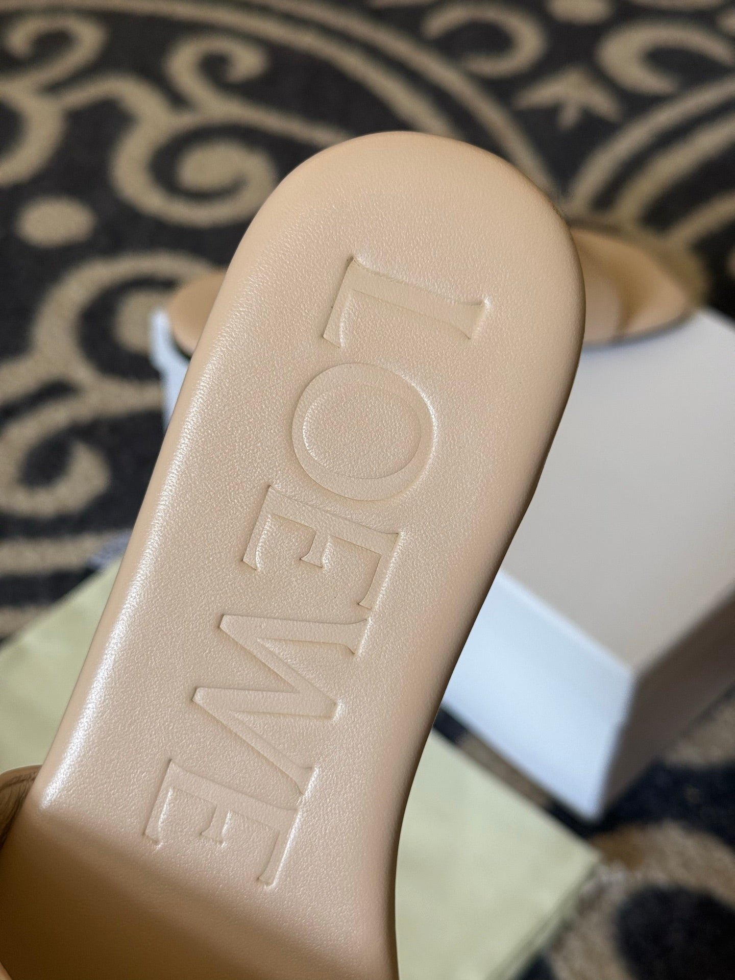 Loewe 25 Pebble Slide Beige Calfskin