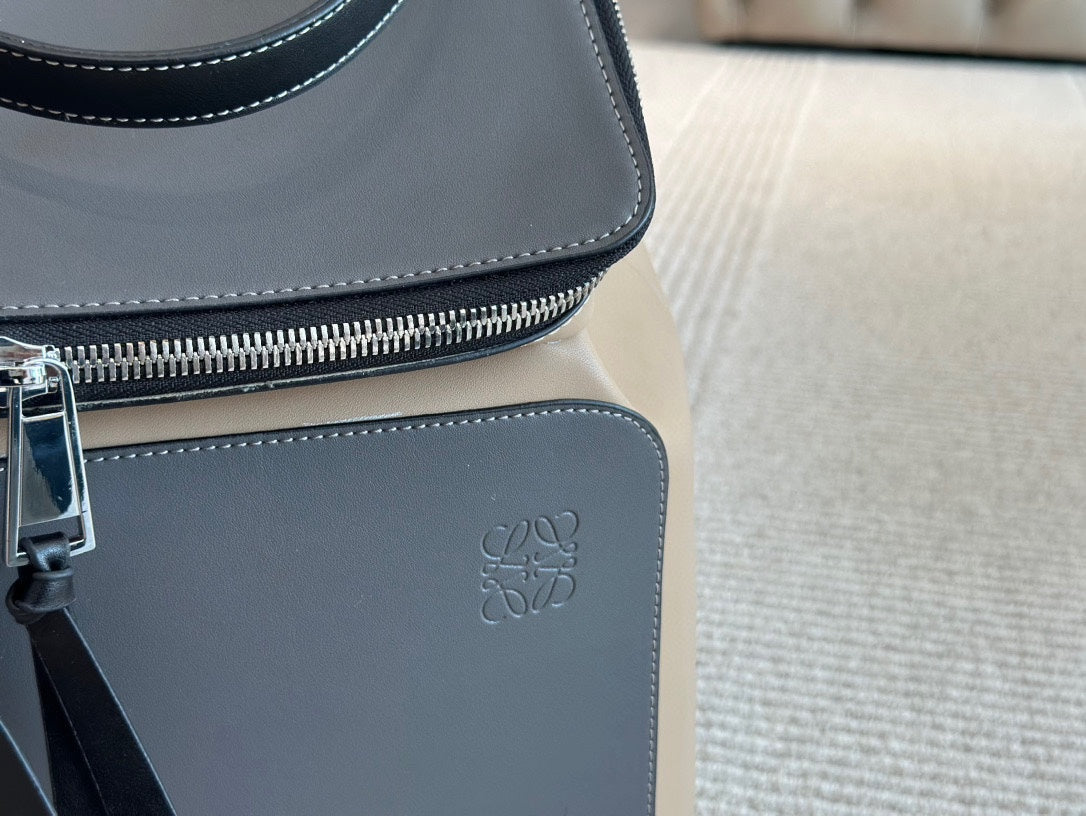 LOE GOYA BACKPACK 40 IN BLACK MIX BEIGE GRAINED CALFSKIN