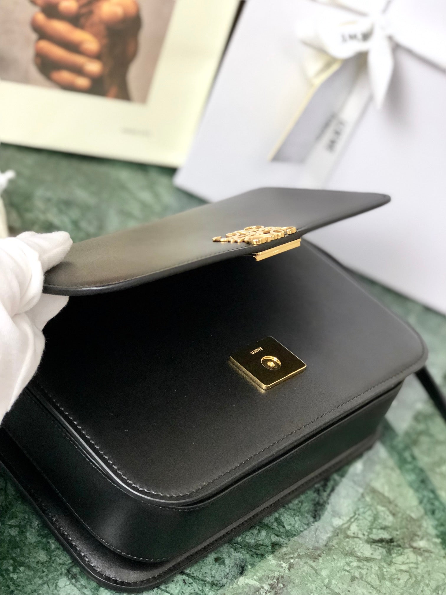 LOE GOYA BAG 18 IN BLACK SILK CALFSKIN