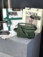 LOE MINI 18 PUZZLE BAG IN BOTTLE GREEN SATIN CALFSKIN