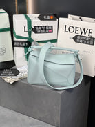 LOE MINI 18 PUZZLE BAG IN LIGHT BLUE SATIN CALFSKIN