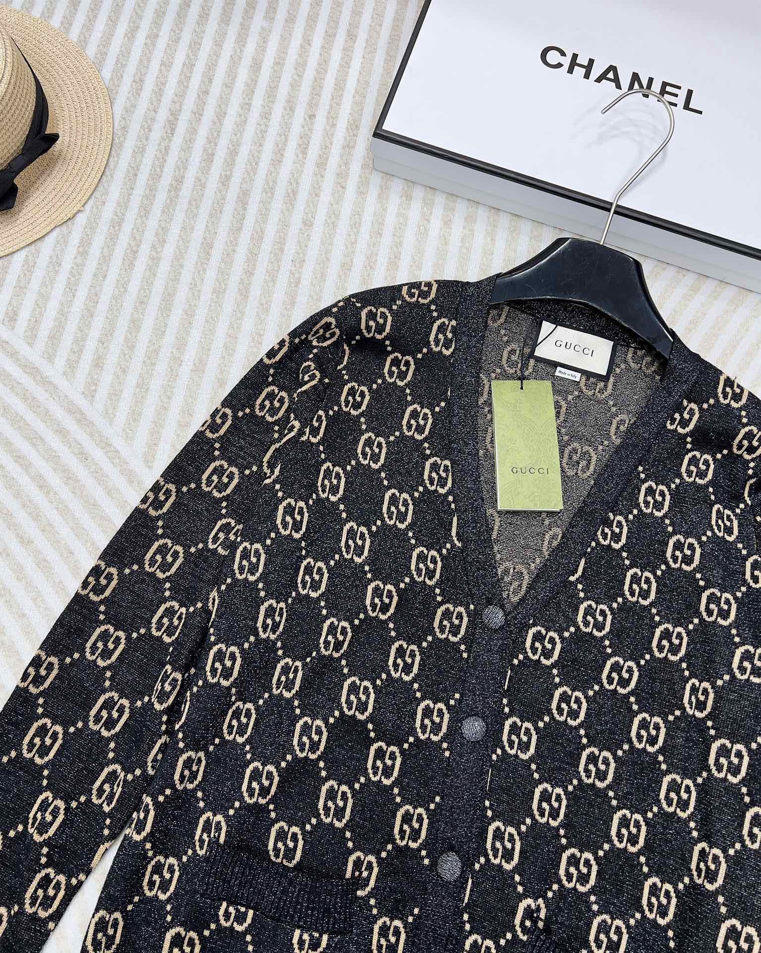 GG V-Neck Long Sleeve Cardigan Black Beige Monogram