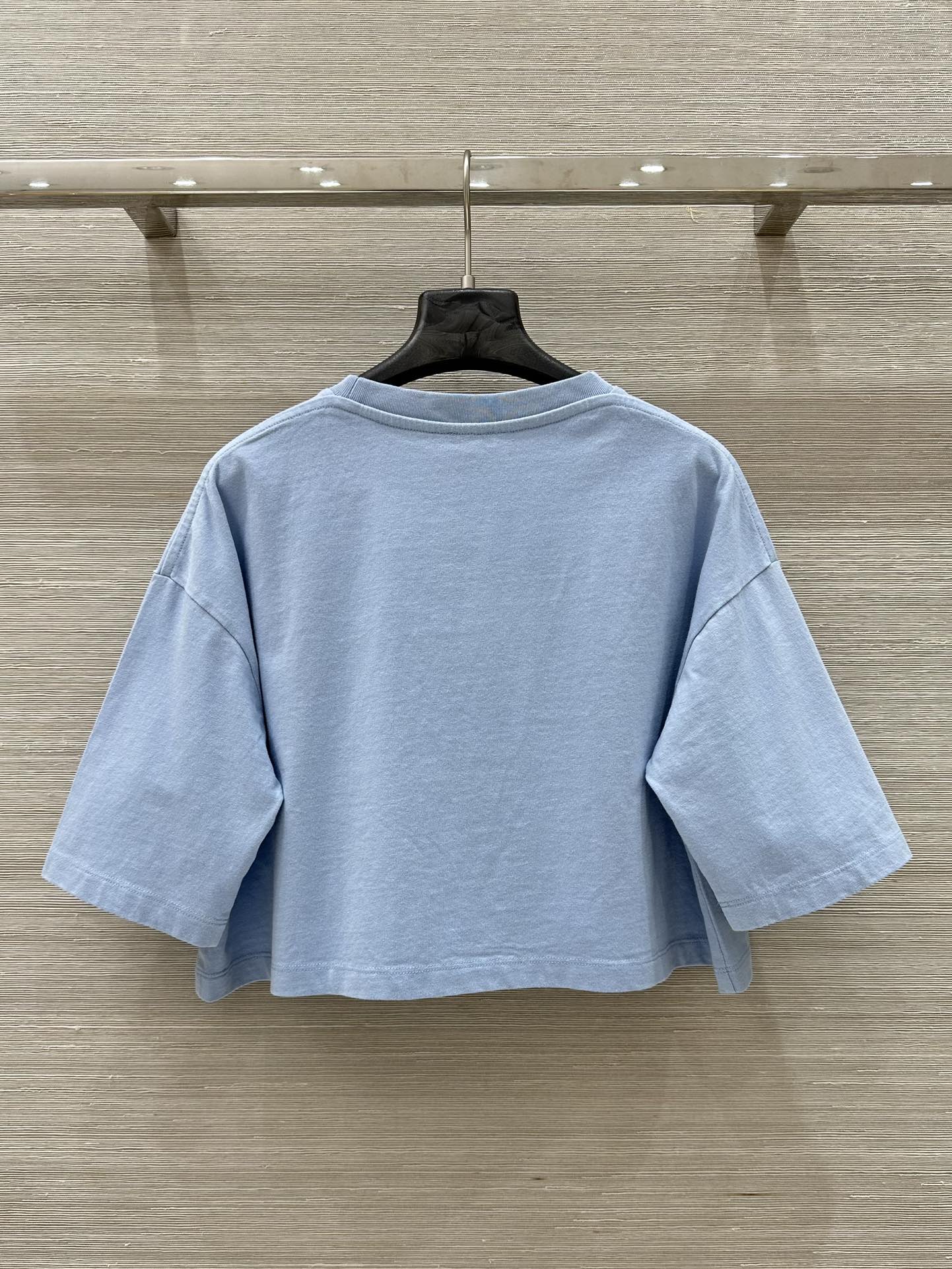 Loewe 25 Cropped Anagram T-Shirt Blue Cotton