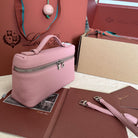 EXTRA POCKET L19 IN FLAMINGO PINK GRAINED CALFSKIN WITH SILVER HARDWARE