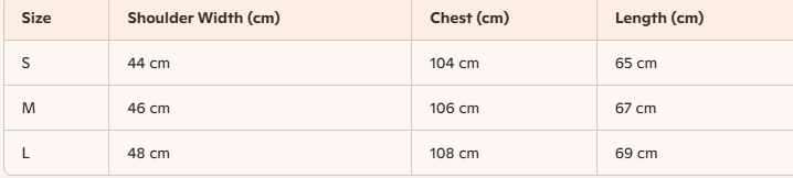- For more information, please see the size guide below