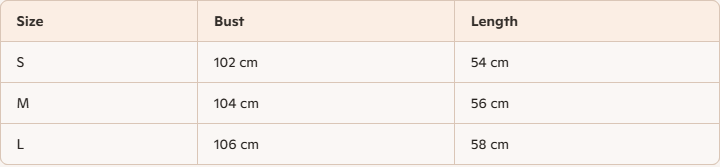 - For more information, please see the size guide below