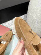LP Summer Charms Walk Loafers In Brown Peanut Suede With Rabbit Fur Lining 985645
