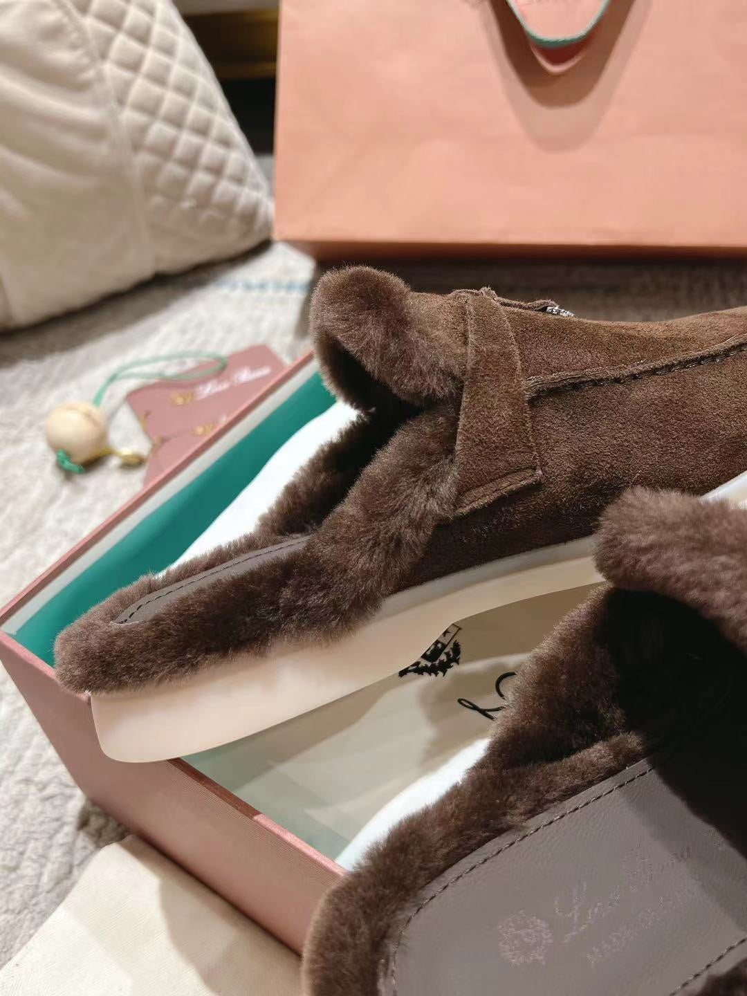LP Charms Walk Babouche Loafer Bottele Brown Suede With Rabbit Fur Lining 206245