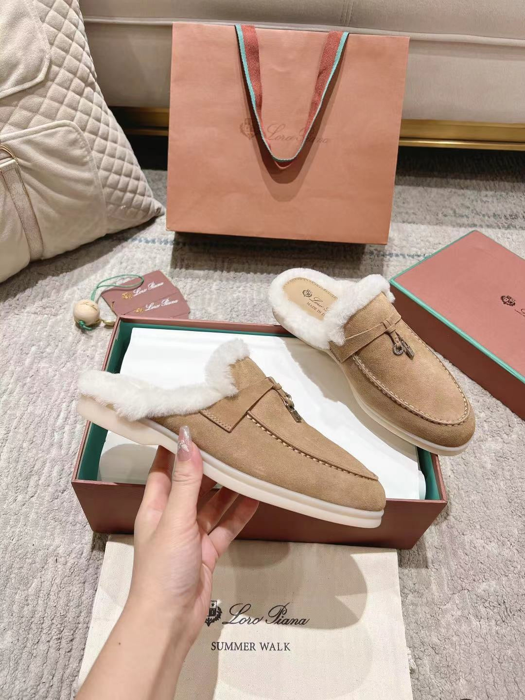 LP Charms Walk Babouche Loafer Peach Yellow Suede With Rabbit Fur Lining 206244