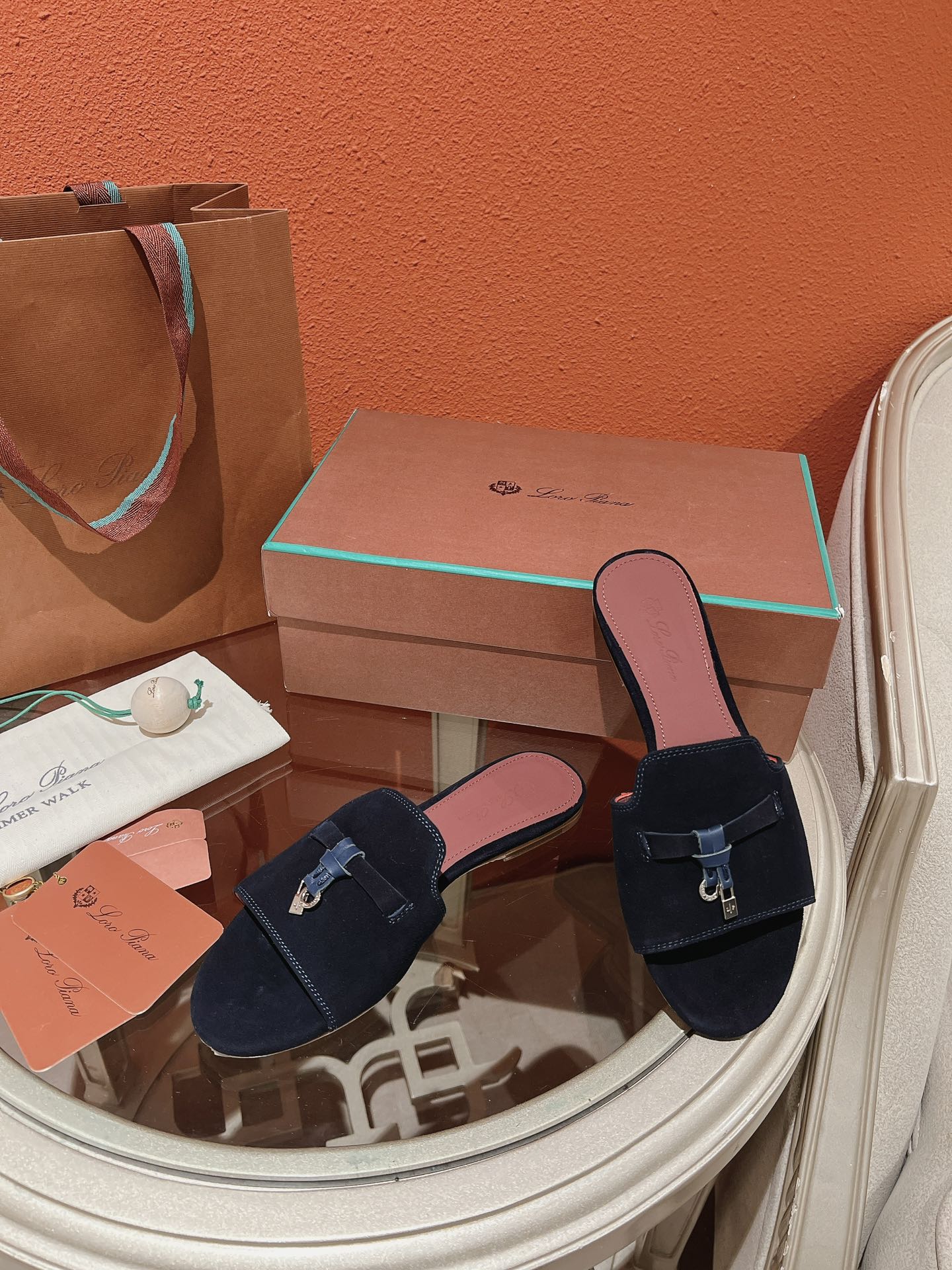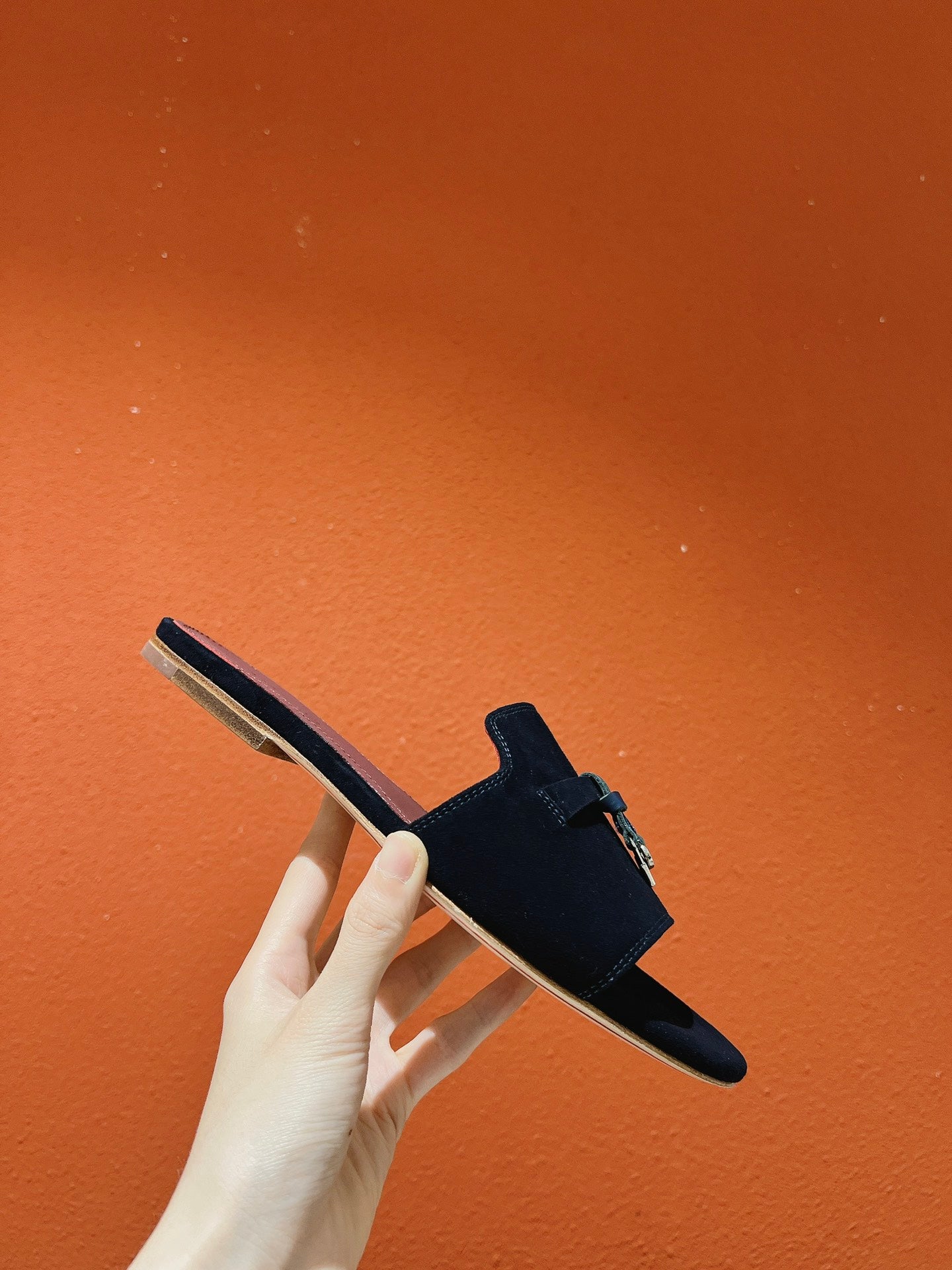 Summer Charms Sandals in Navy Suede Maroon Lambskin