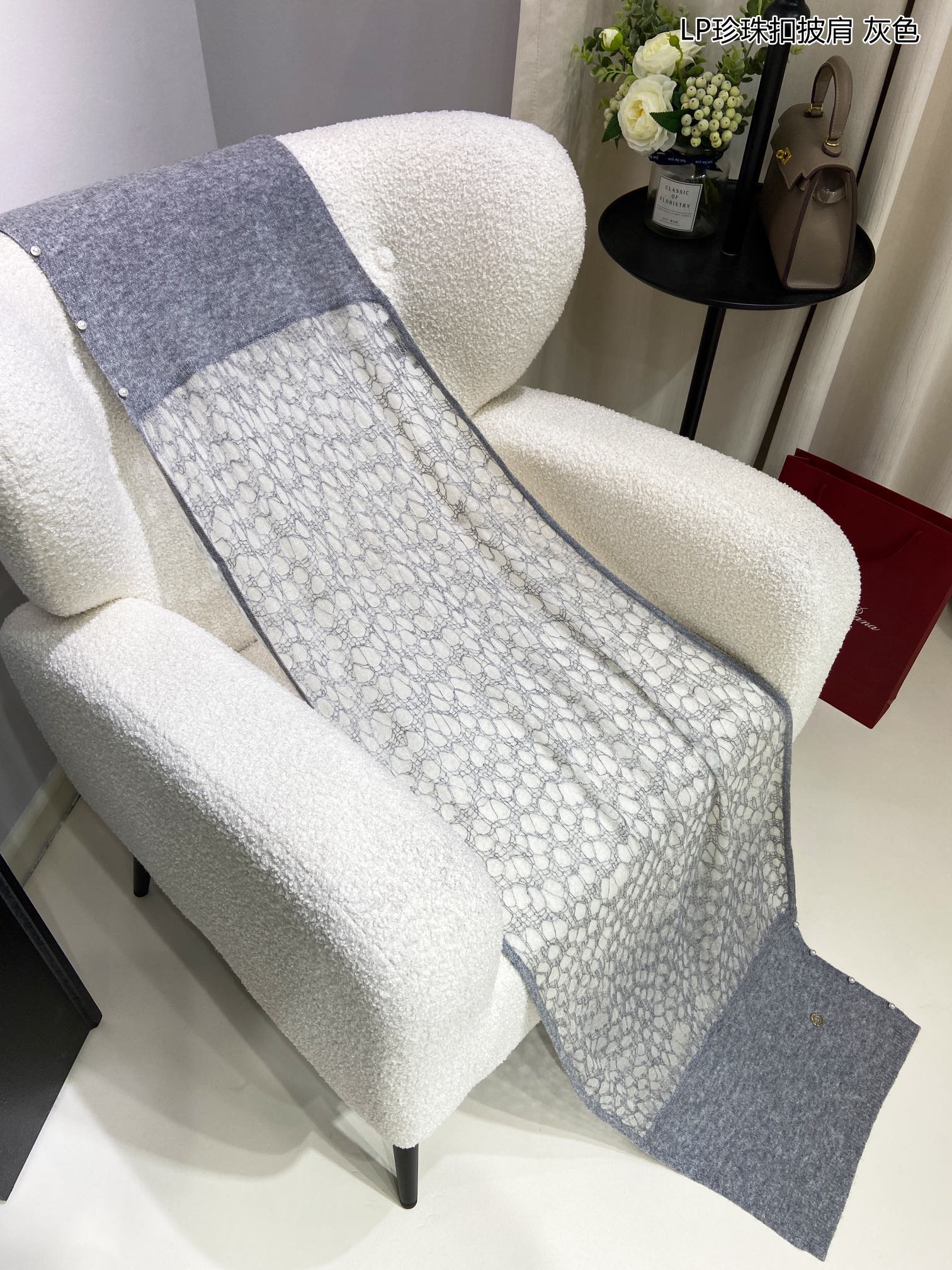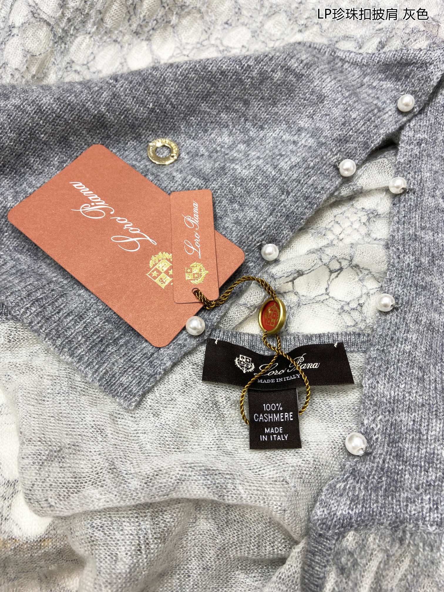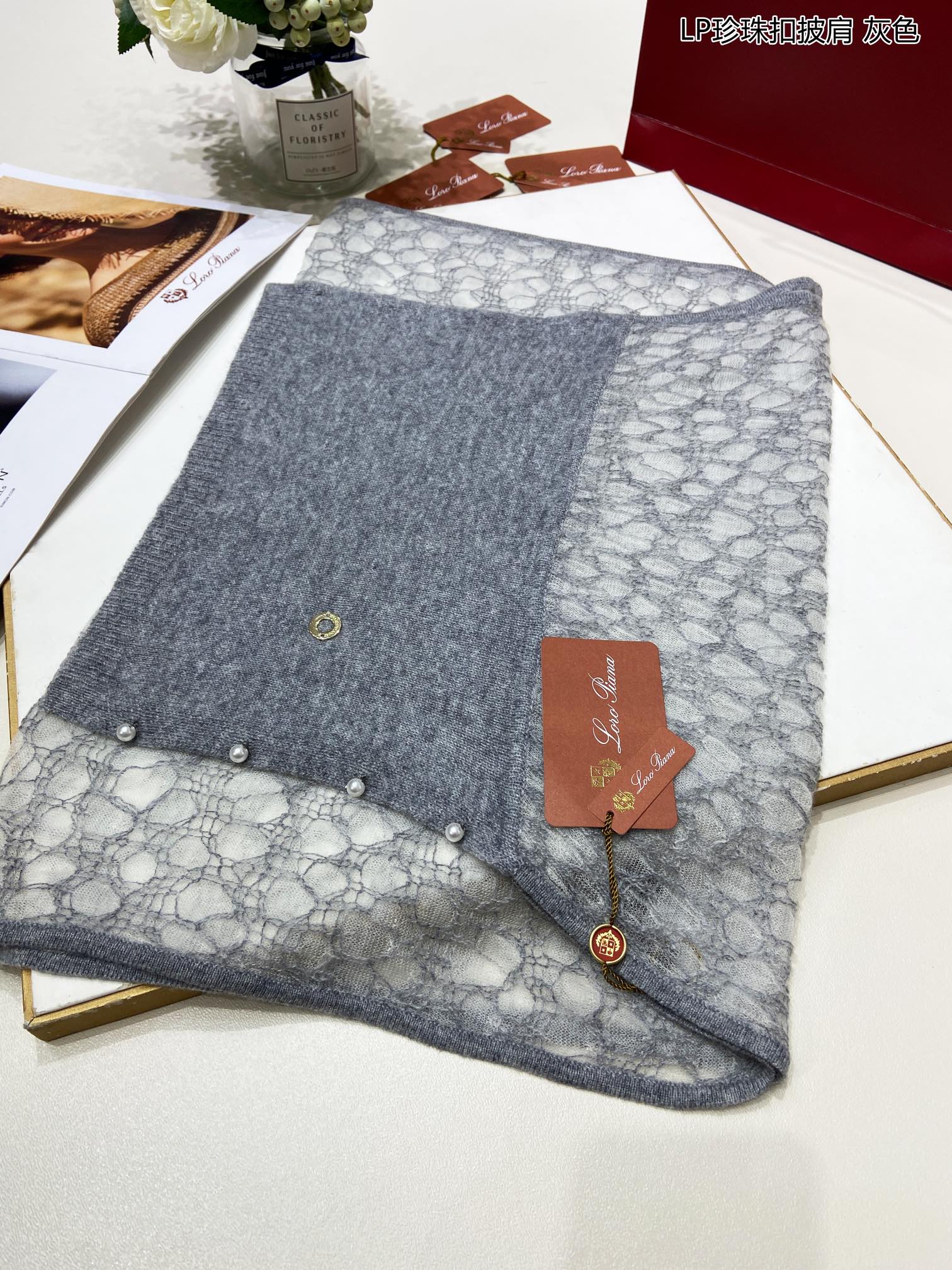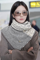 LP Pearl Button Scarf 135 CM In Grey White Cashmere 416913