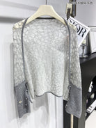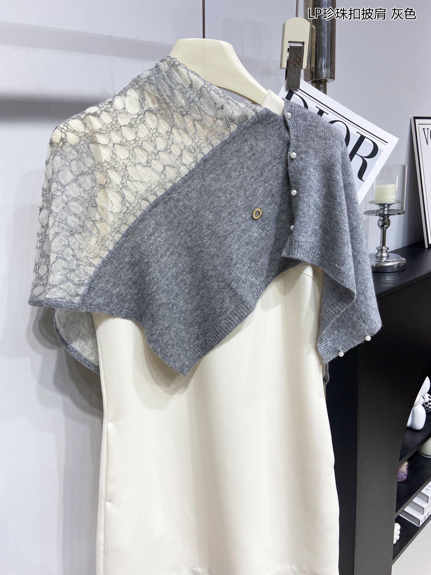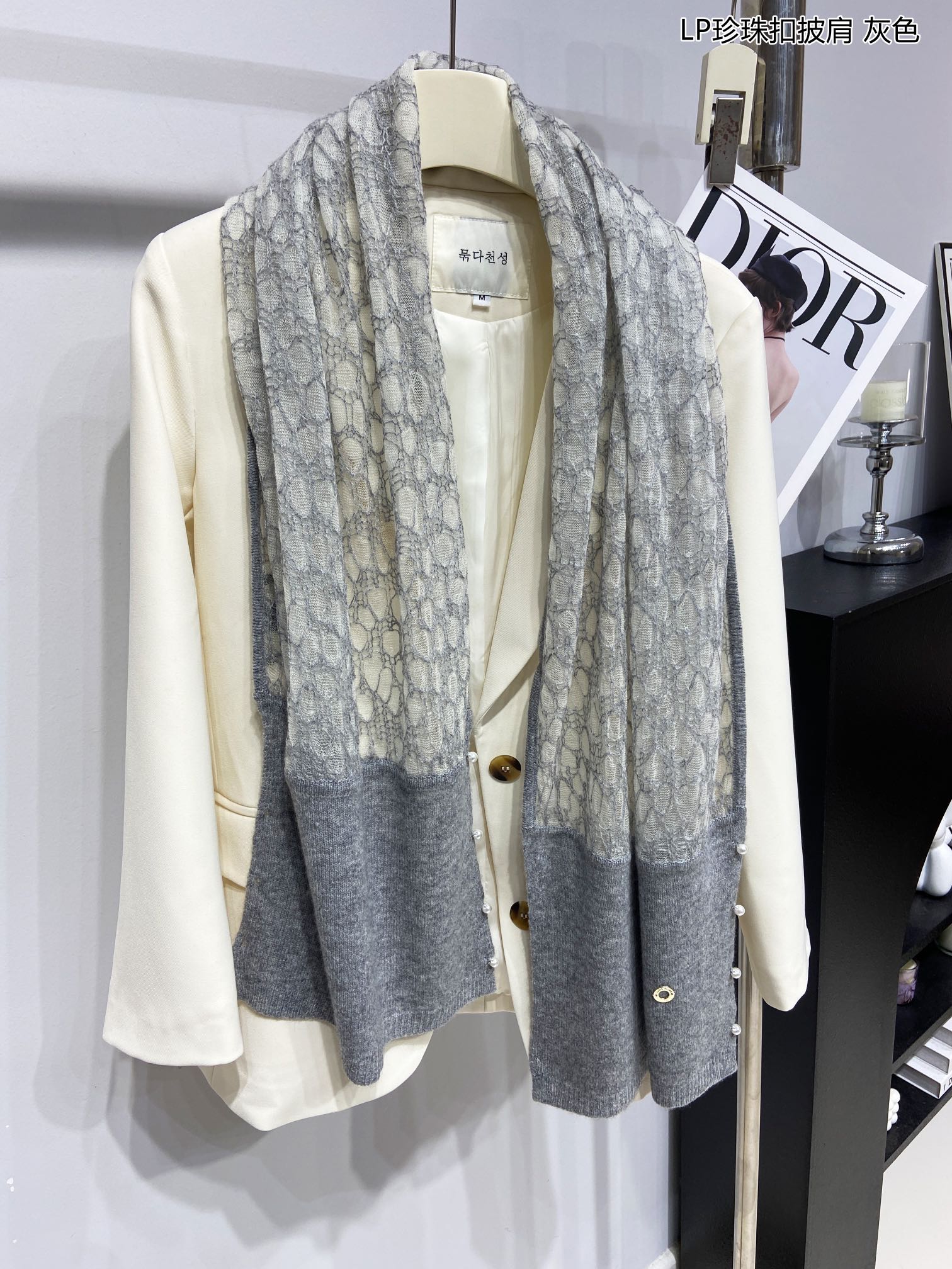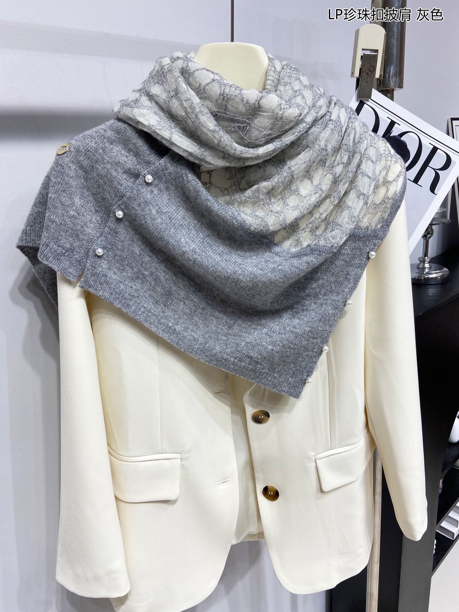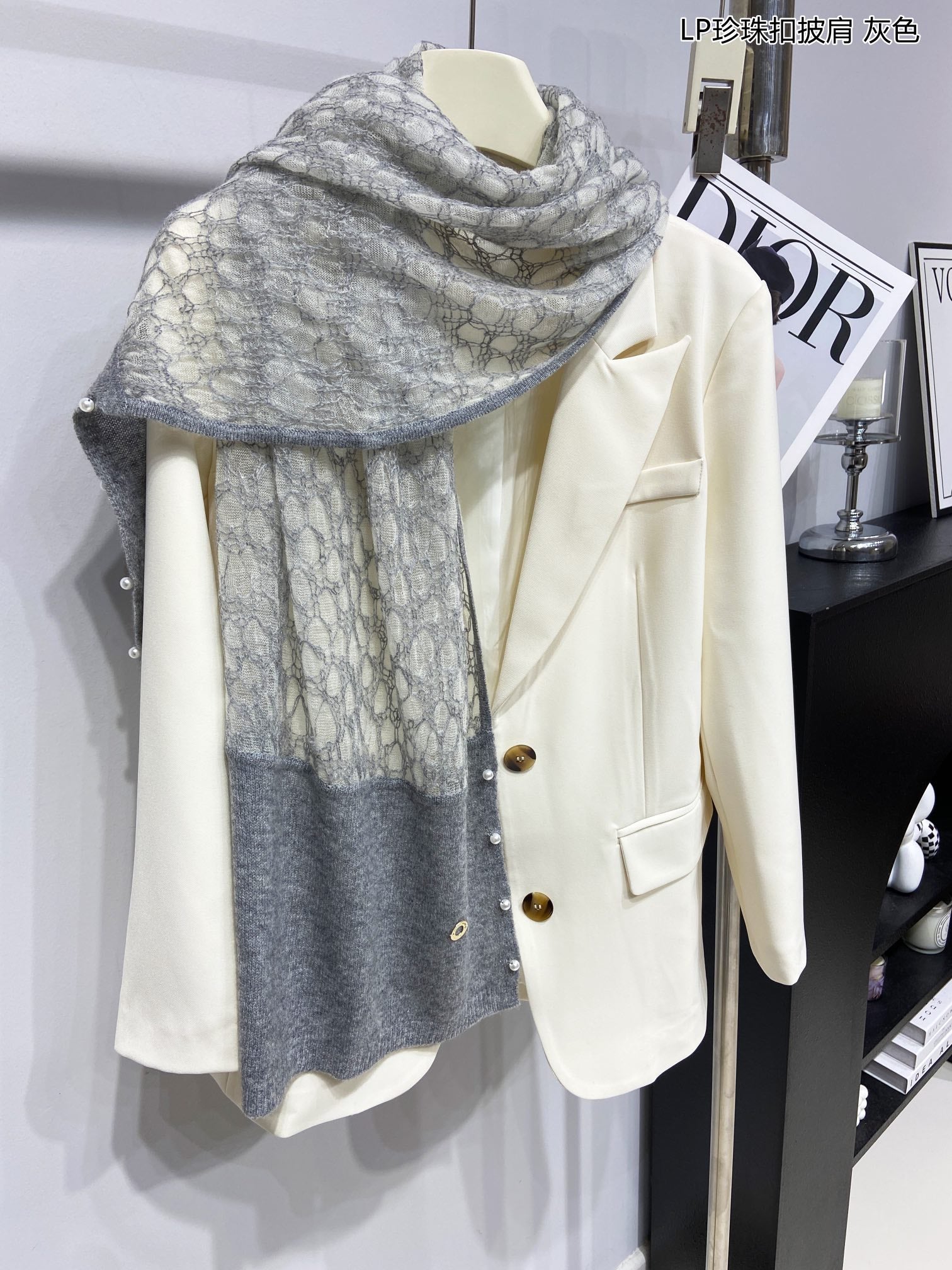 LP Pearl Button Scarf 135 CM In Grey White Cashmere 416913