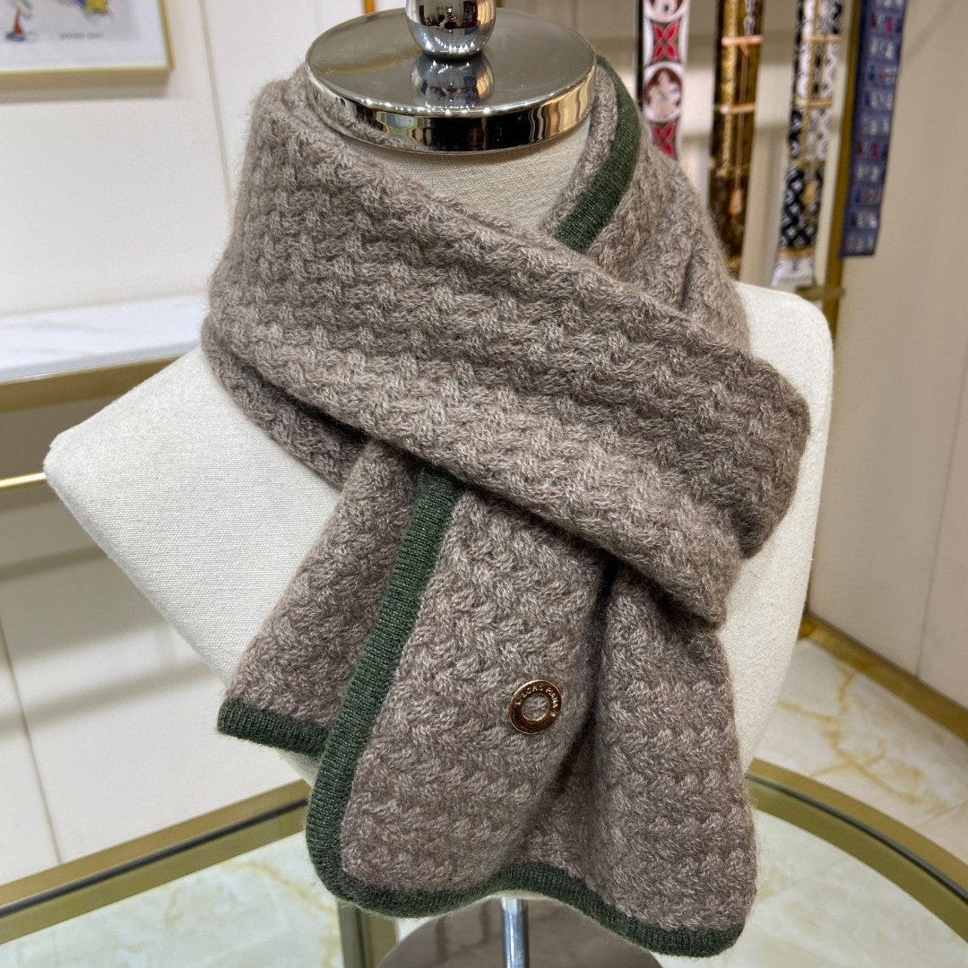 LP Scarf 125 CM In Earth Brown With Dark Green Border Cashmere 201758