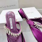 Manolo Flats Mules Crystal Purple Silk Satin 327473