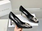 Manolo Snowflake Buckle Pumps Black Cowhide 204508