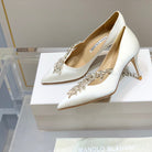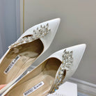 Manolo Wheat Ear Rhinestone High Heels Pumps White Silk Fabric 327453