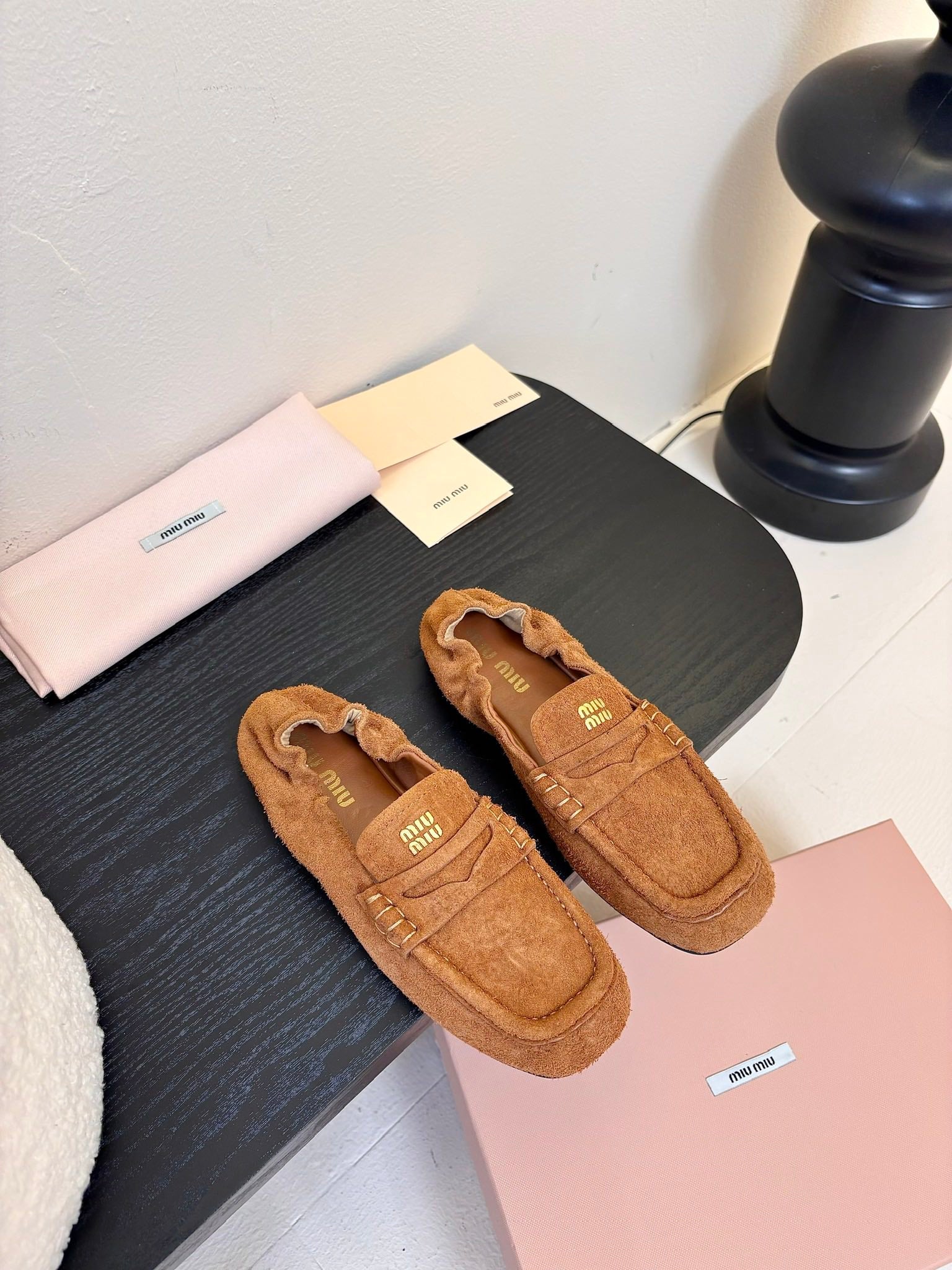 Miu 25C Ruches nappa Loafers Copper Brown Suede 235807