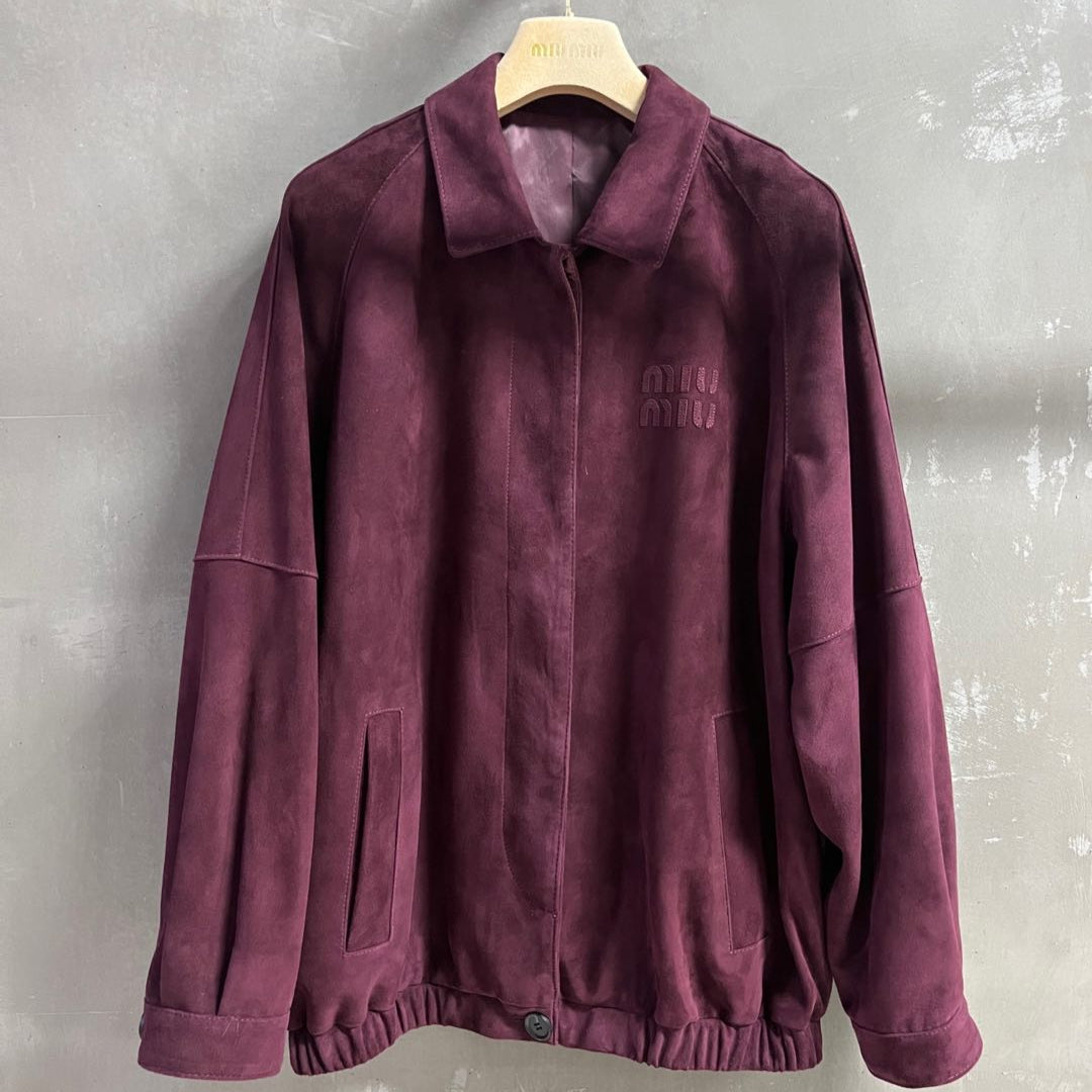 Miu Miu 2025 Jacket Burgundy Sheepskin Suede