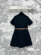 Miu Miu 25 Belt Decorated Denim Dress Black Cotton