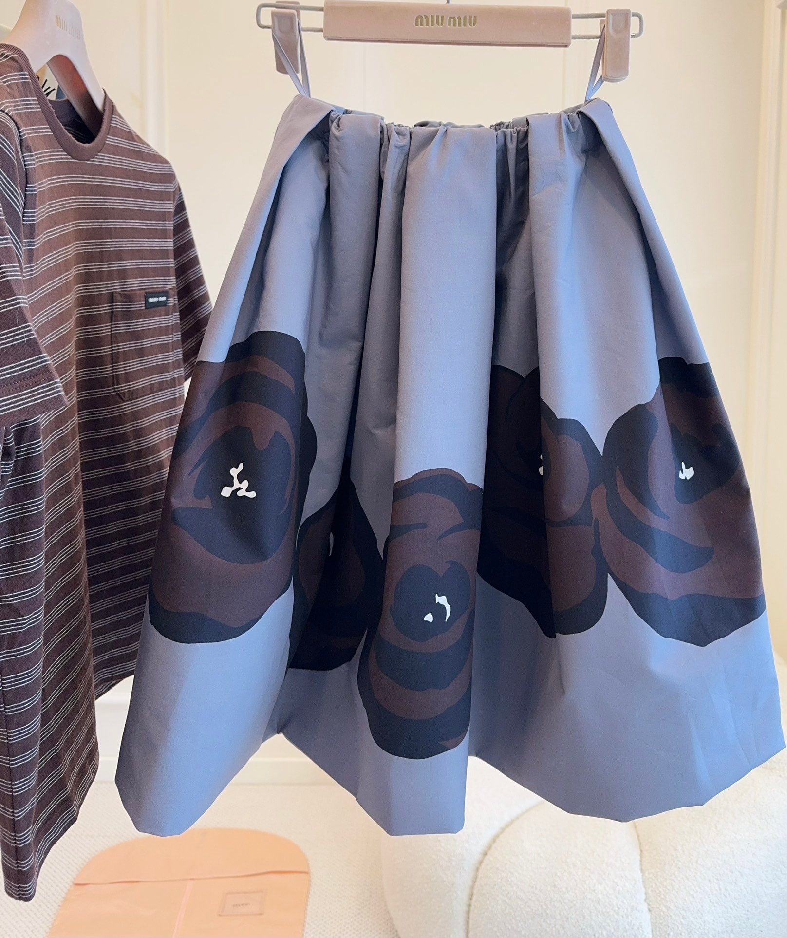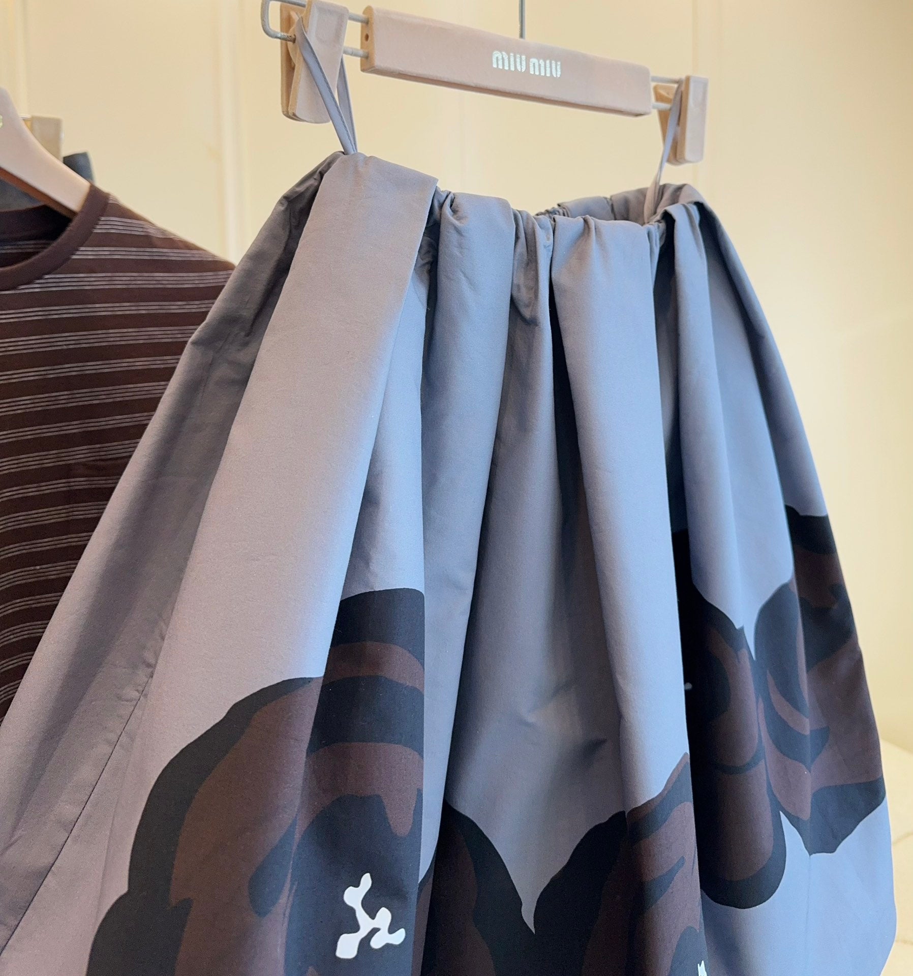 Miu Miu 25 Floral Fluffy Skirt Gray Cotton