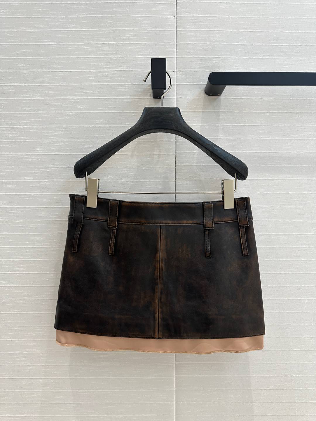 Miu Miu 25 Short Skirt Black Brown Sheepskin