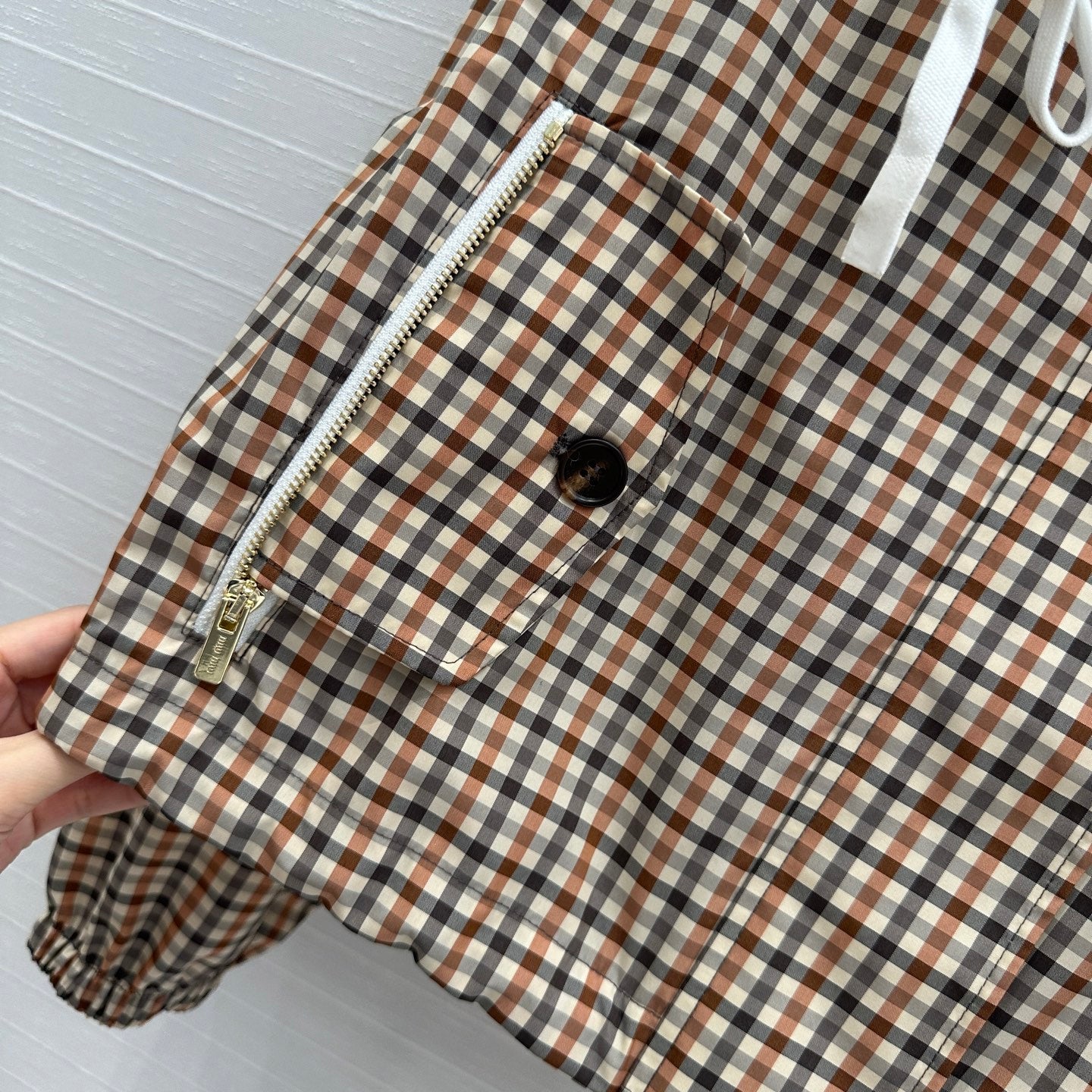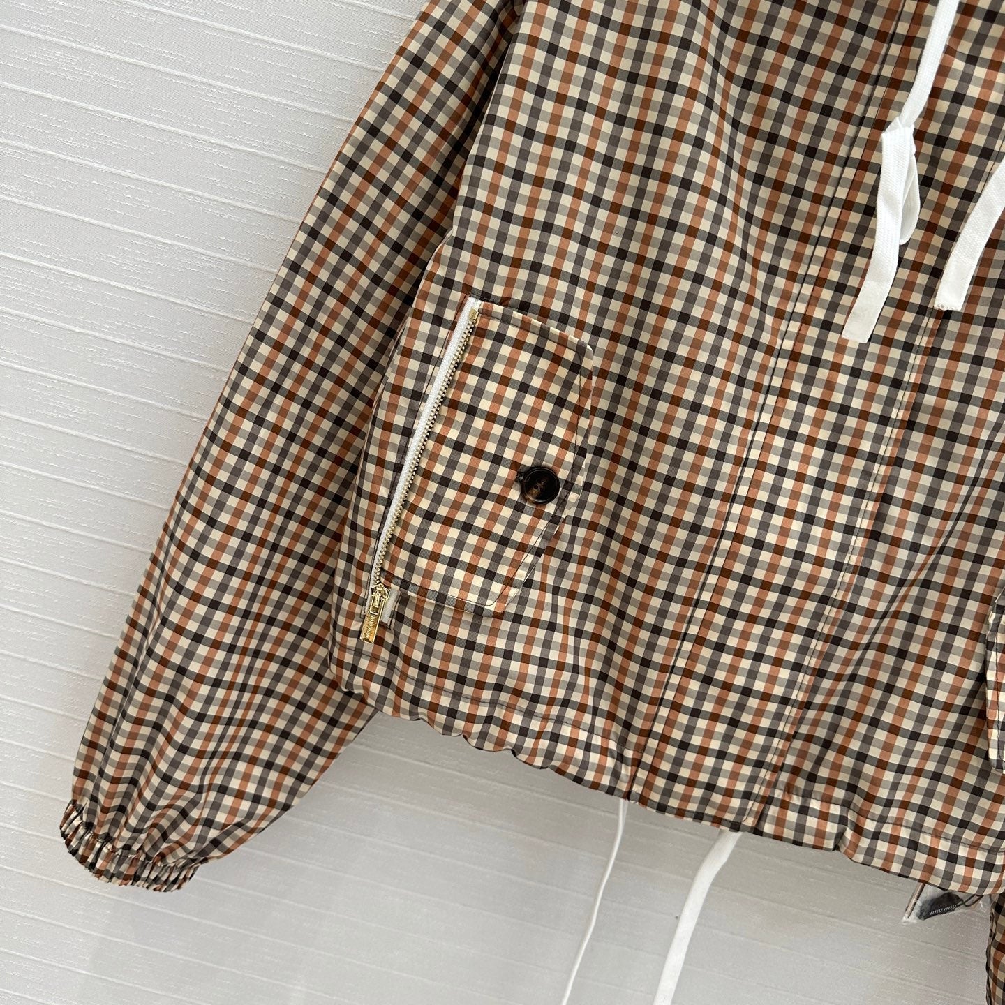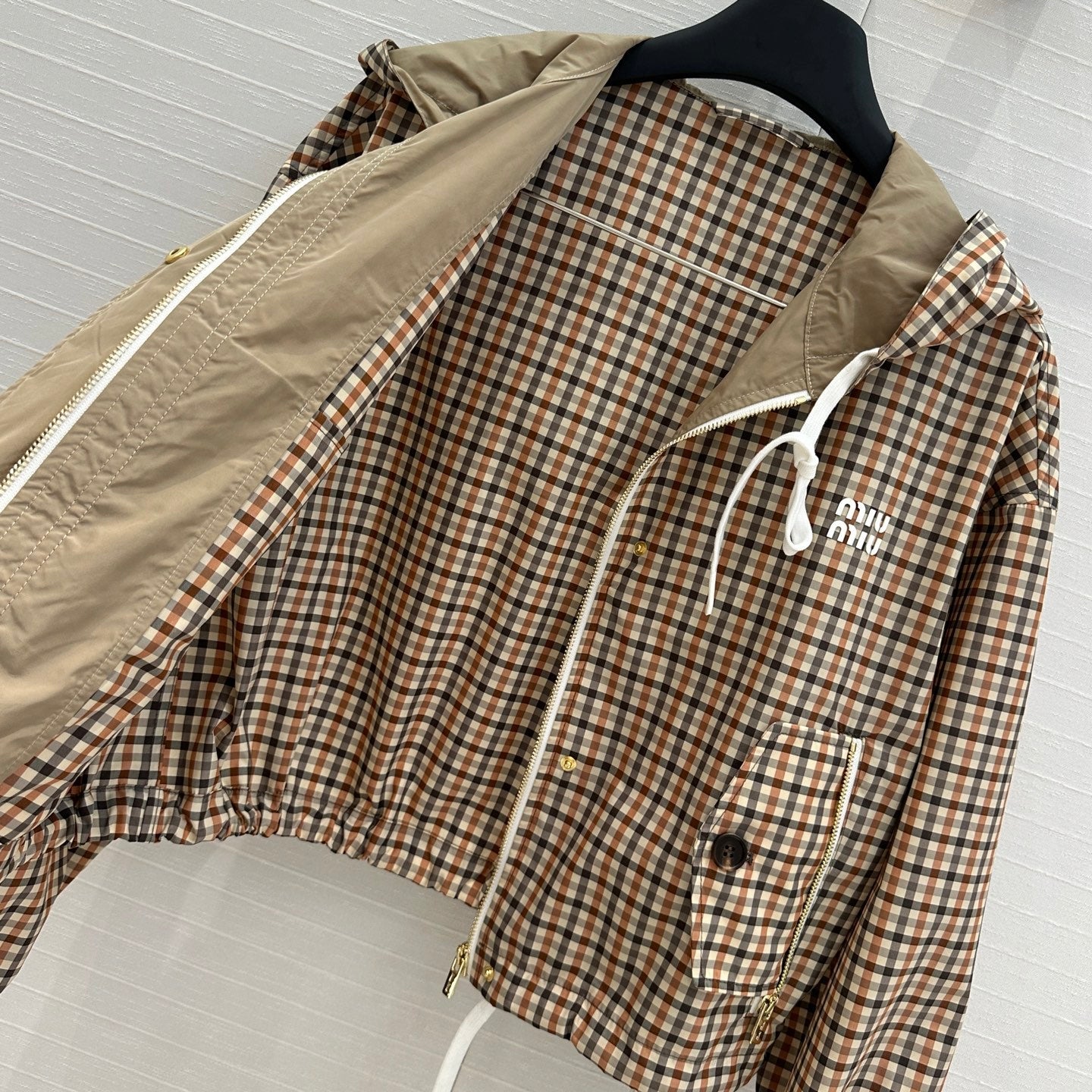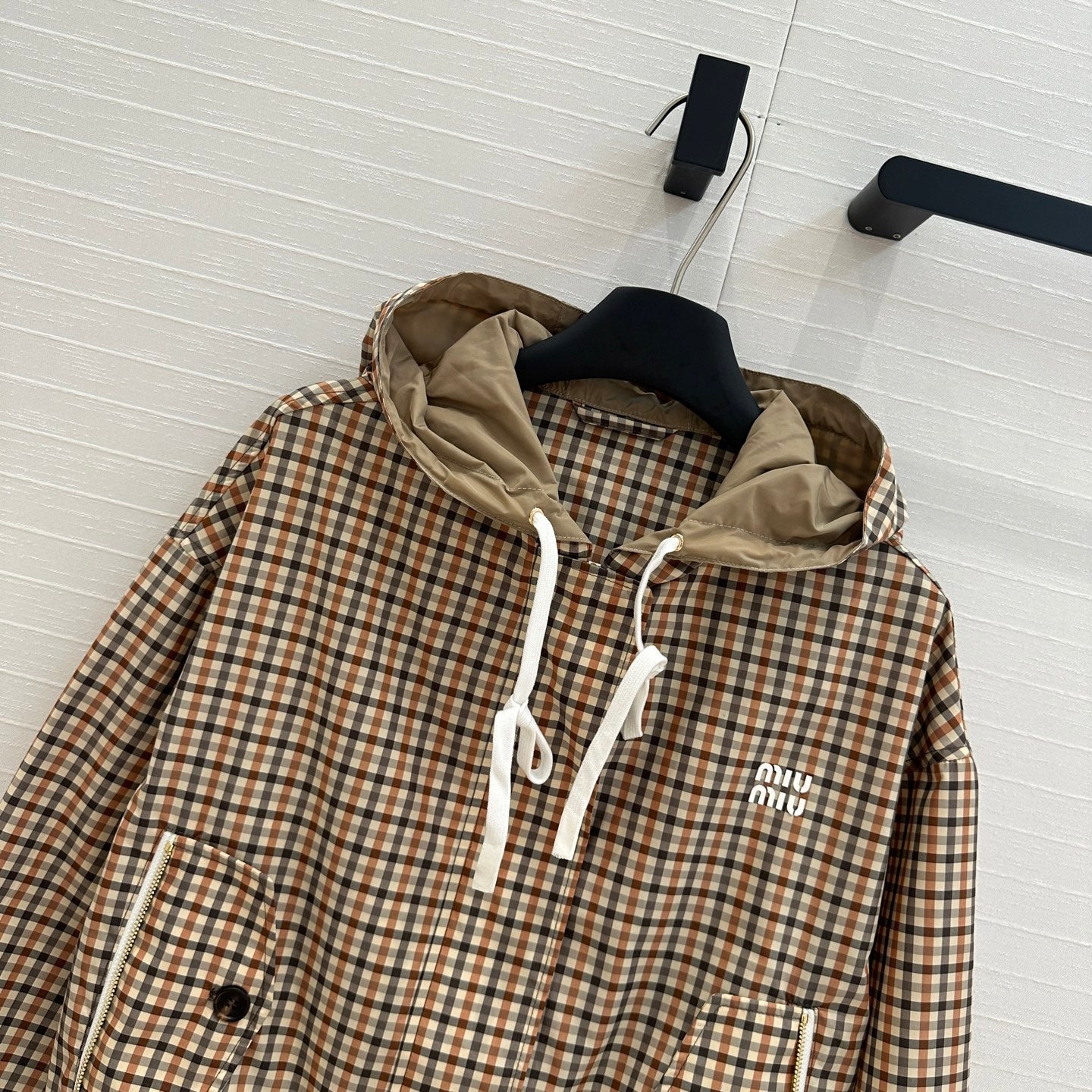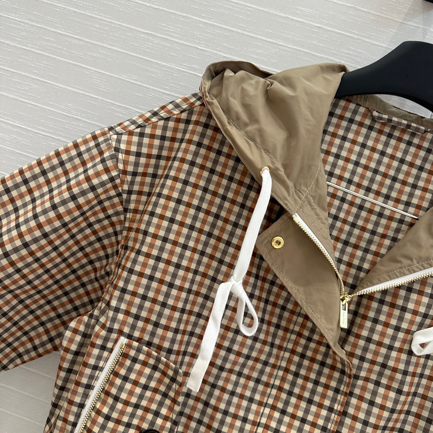 Miu Miu Pattern Hooded Jacket Beige Brown Polyester