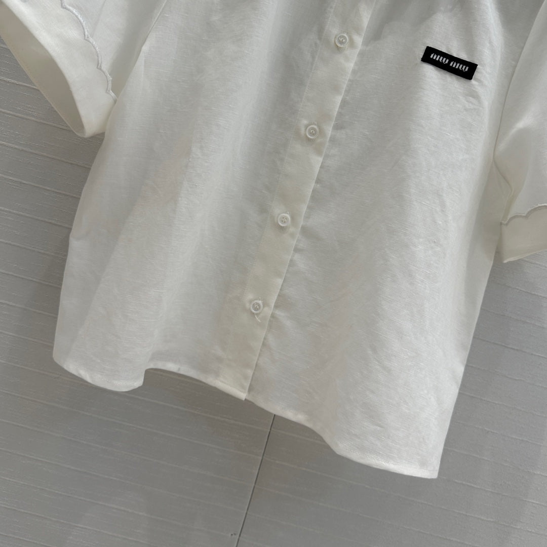 Miumiu 25 Double-layer Collar Shirt White Linen Cotton