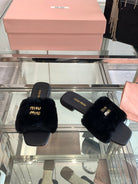 Miu Slippers Black Super Soft Wool