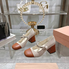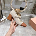 Miu 25C Mary Jane 75MM Beige Cream Mix Brown Fabric 235367