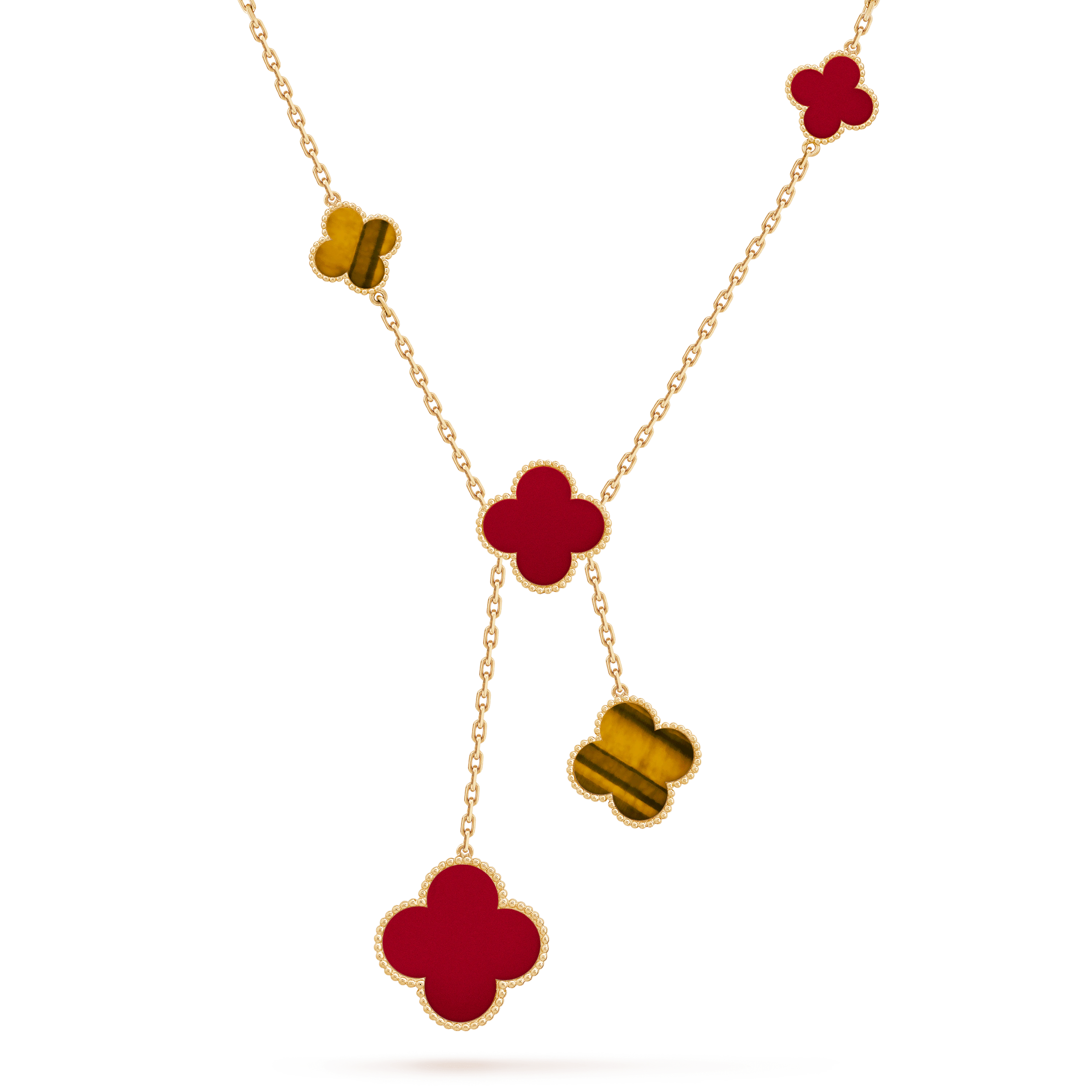 CLOVER TIGER EYE CARNELIAN NECKLACE 6 MOTIF