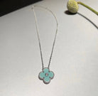 CLOVER 1 DIAMOND LIGHT BLUE SILVER NECKLACE