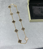 CLOVER 10 MOTIF GREY MOP PINK GOLD NECKLACE