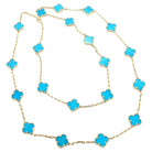 CLOVER 20 MOTIF TURQUOISE 86CM GOLD NECKLACE