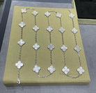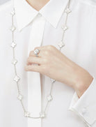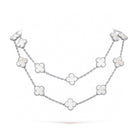 CLOVER 20 MOTIF WHITE MOP 86CM SILVER NECKLACE
