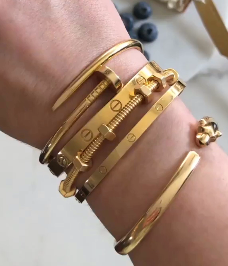 For LOVE bracelet, the usual bracelet sizing rules differ slightly due to the design of the bracelet. We recommends adding one centimeter for a tight fit and two centimeters for a looser fit.