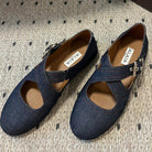 Alaia 25 Criss Cross With Stud Ballet Flats Denim Blue Sheepskin 303695