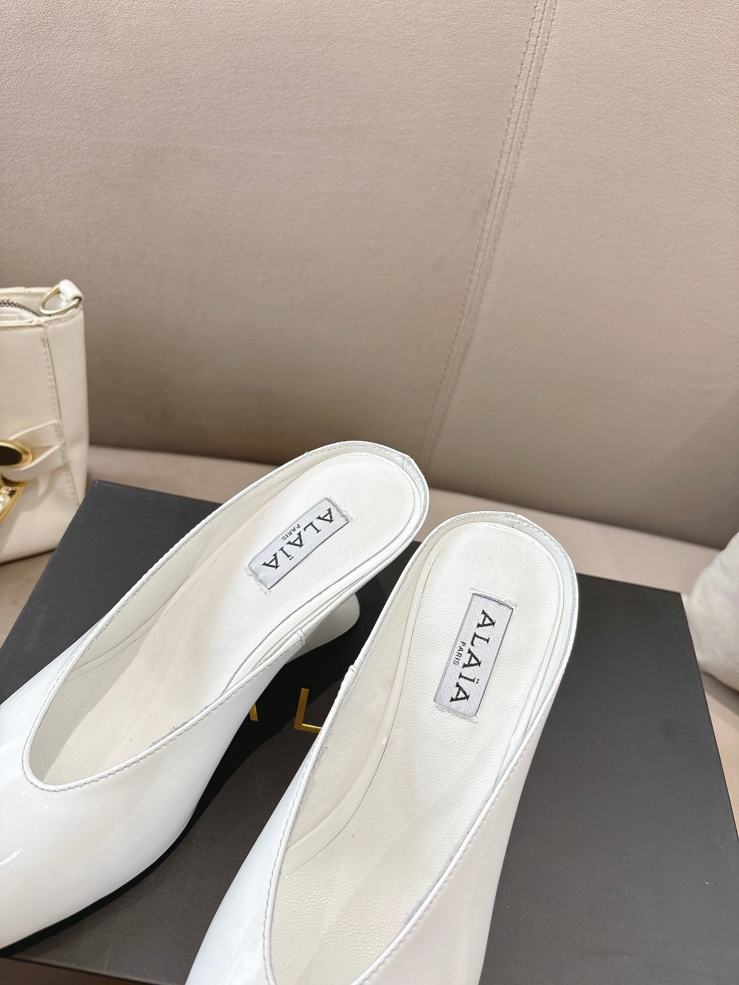 Alaia 25 Curve Wedge Mules White Lambskin 293554