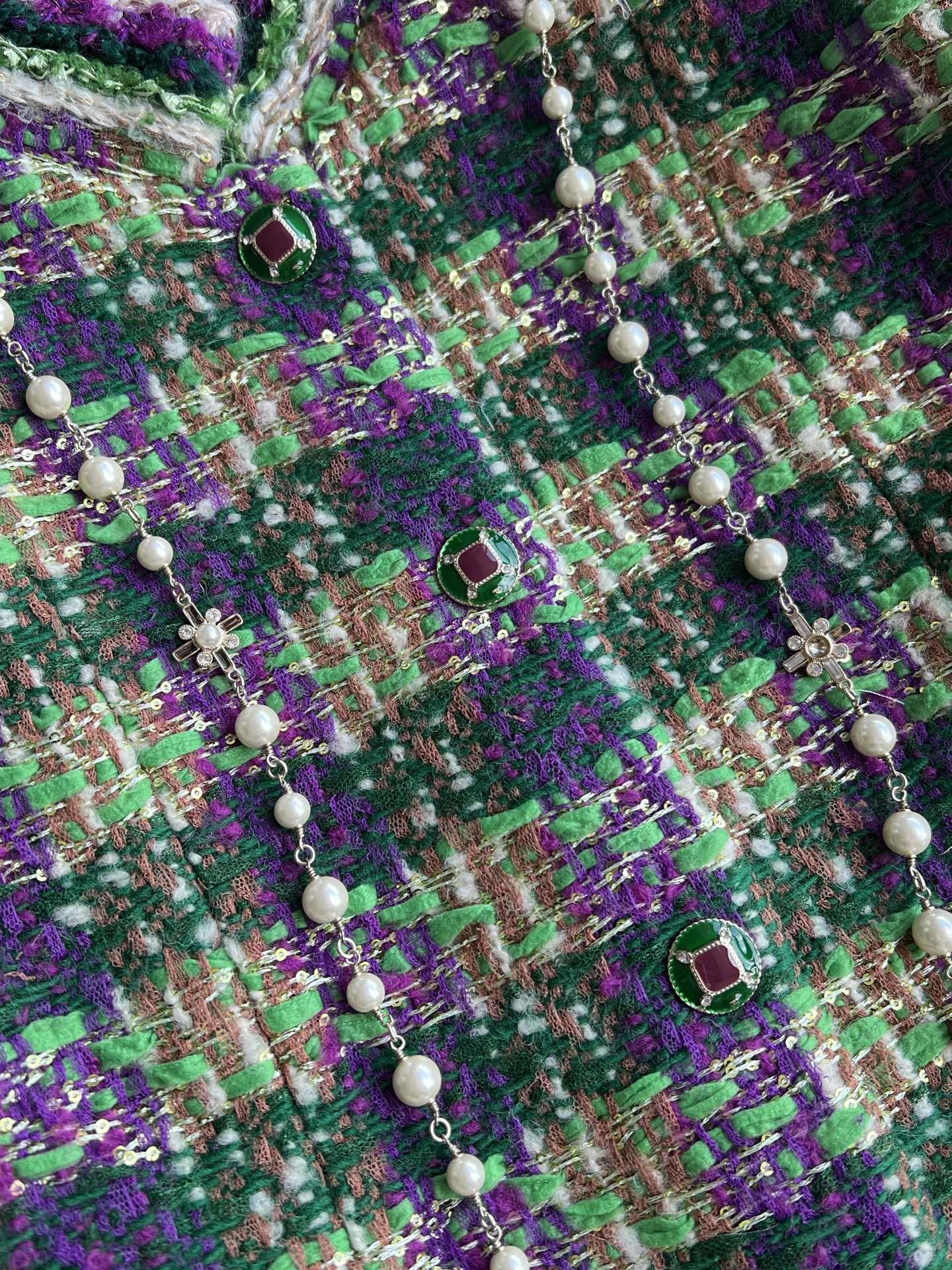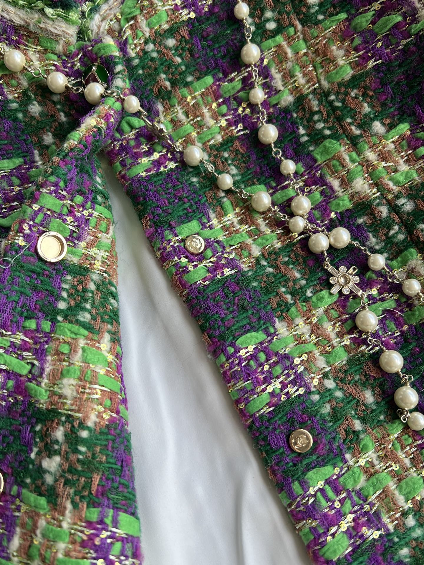 Chanel 2025 Plaid Tweed Jacket Green Wool Polyester 325361