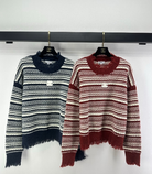 Chanel 2025 Striped Sweater Blue and Red Wool Cashmere