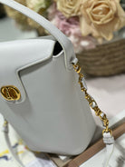CD Montaigne Large Chain Bucket Bag White Calfskin 336797